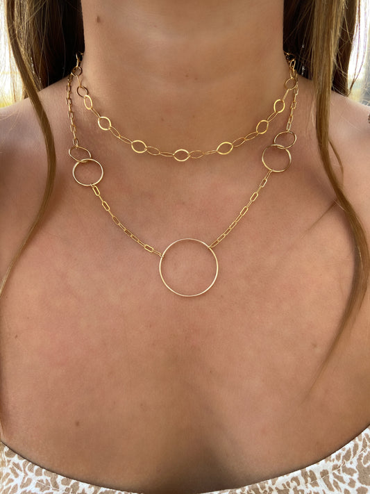 14k Gold Filled Link & Flat Oval Chain Layered Bracelet