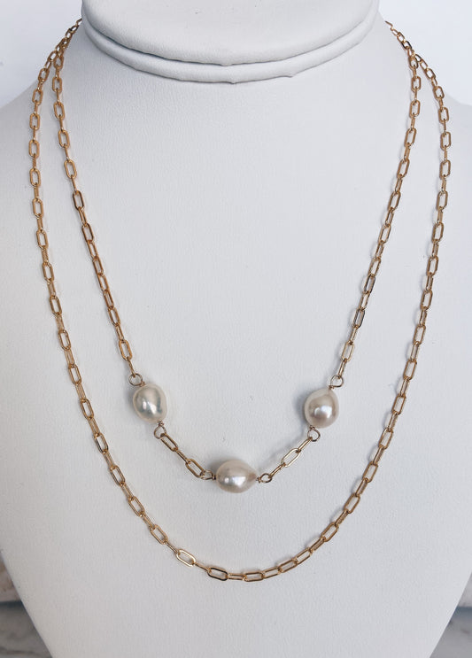 14k Gold Filled Layered Baroque Pearl Bracelet