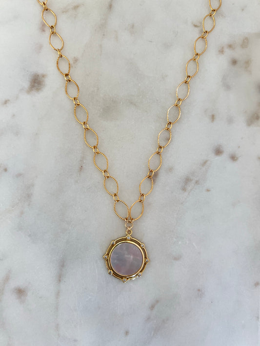 Deco CZ & Shell Pearl Coin Necklace