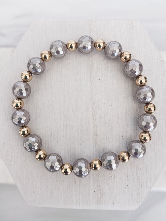 14k Gold Filled & Trio Sterling Silver Pave Beads Bracelet