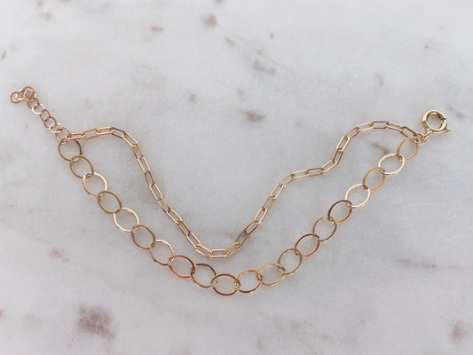 14k Gold Filled Link & Flat Oval Chain Layered Bracelet