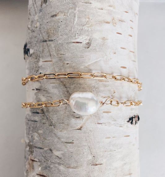 14k Gold Filled Layered Baroque Pearl Bracelet