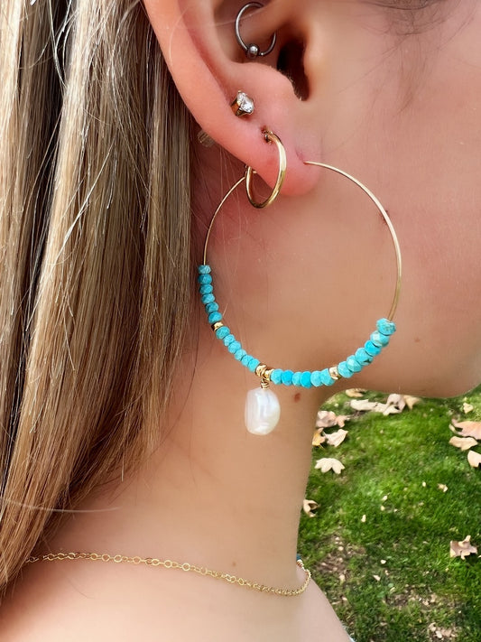 Turquoise & Baroque Pearl Hoops