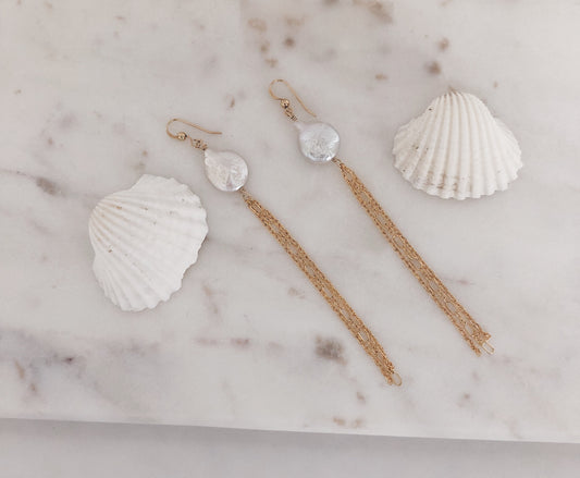 Freshwater Coin Pearl Duster Earrings