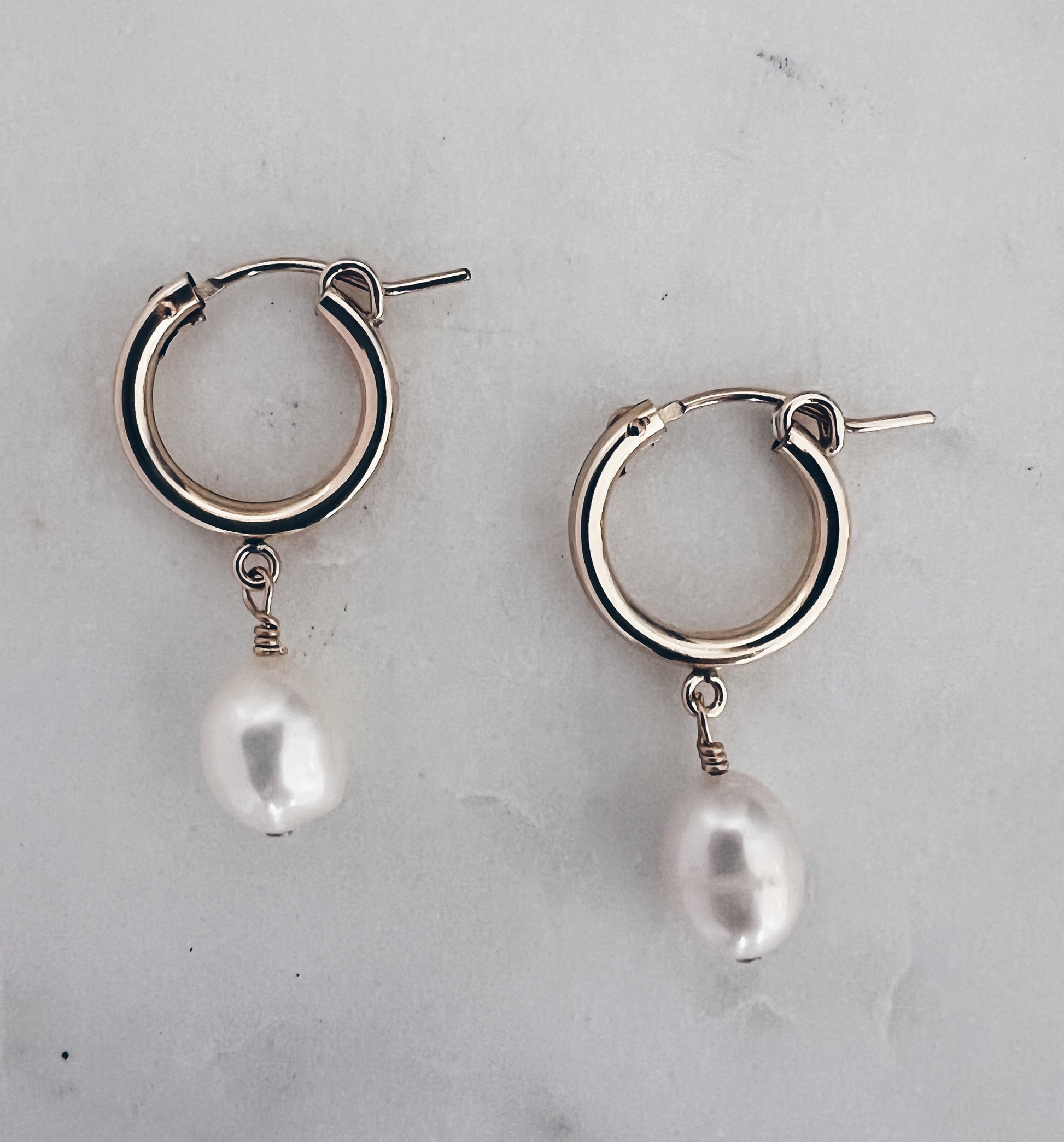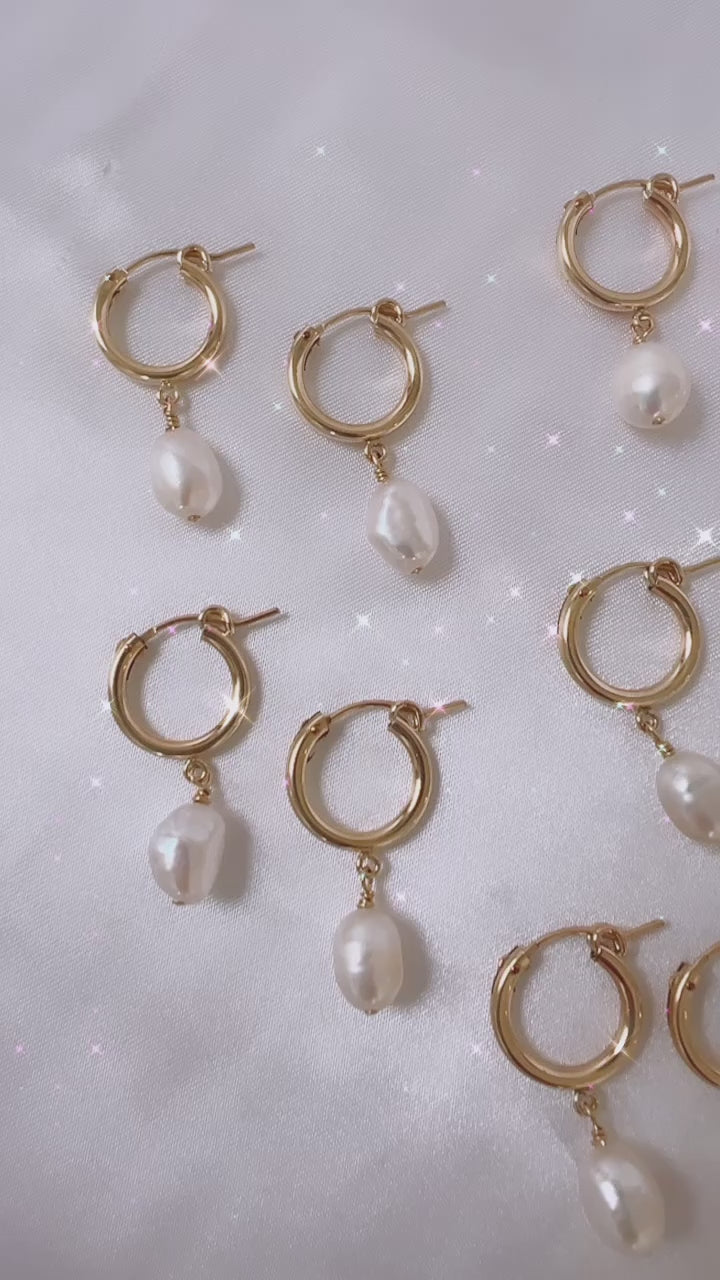 14k Gold Filled Baroque Pearl Huggie Hoops