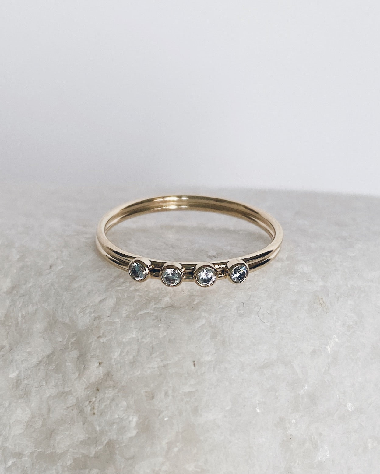 14k gold filled double wire with four sparkling czs. Simple on it's own stacked along with your favs!