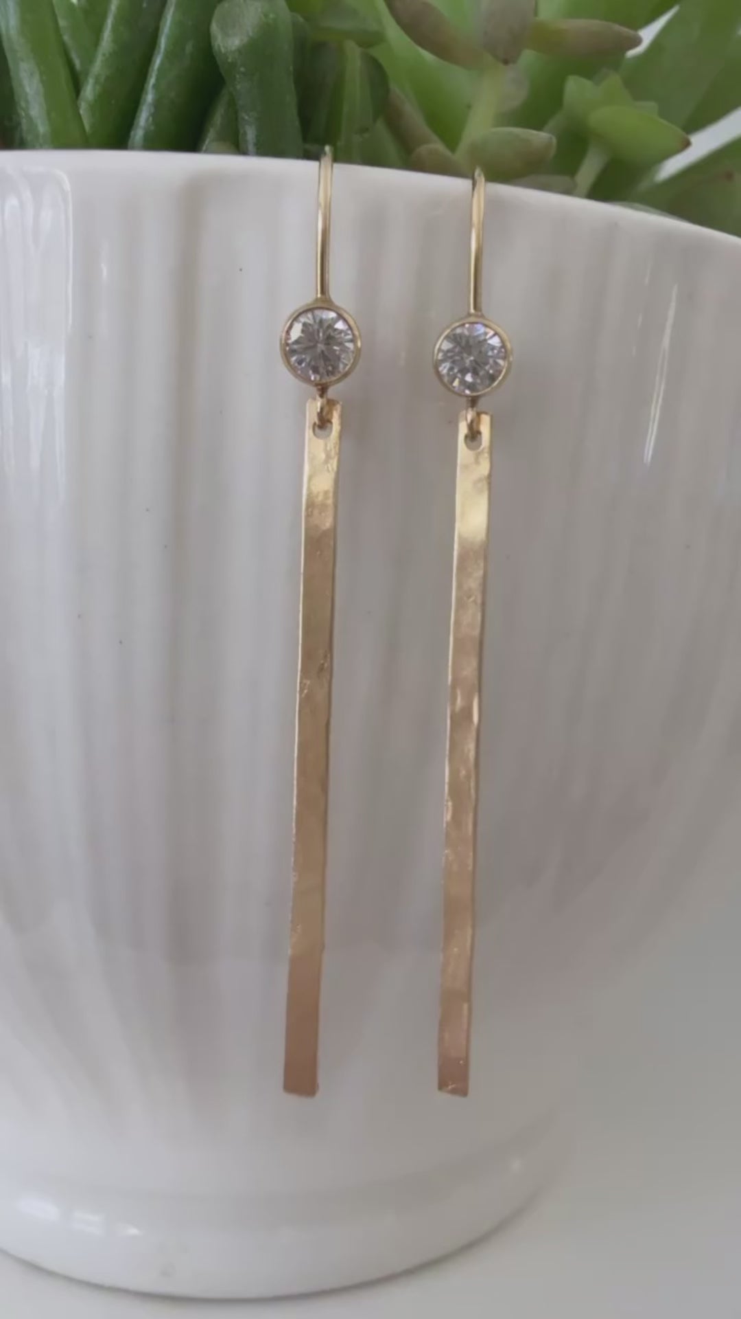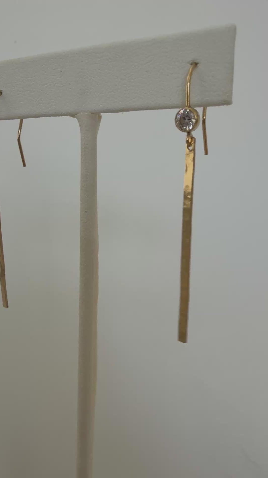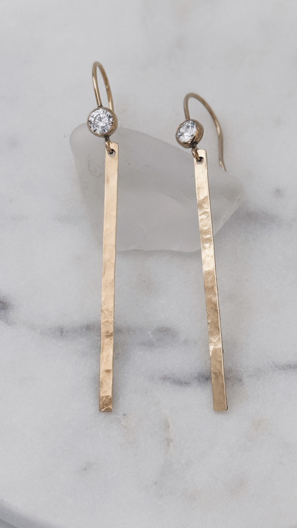 Elevate your everyday style with these 14k Gold Filled CZ Stick Earrings. Hand hammered for a unique texture, they offer lasting shine without tarnishing. Waterproof and safe for sensitive skin, these earrings combine durability with comfort, making them perfect for daily wear.