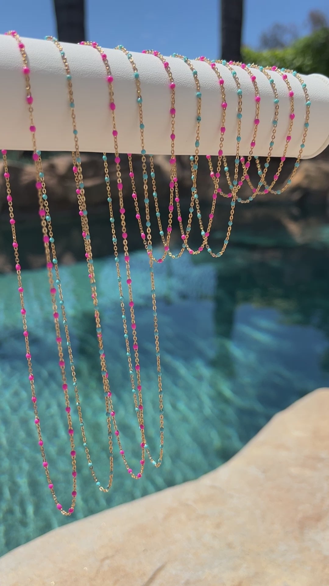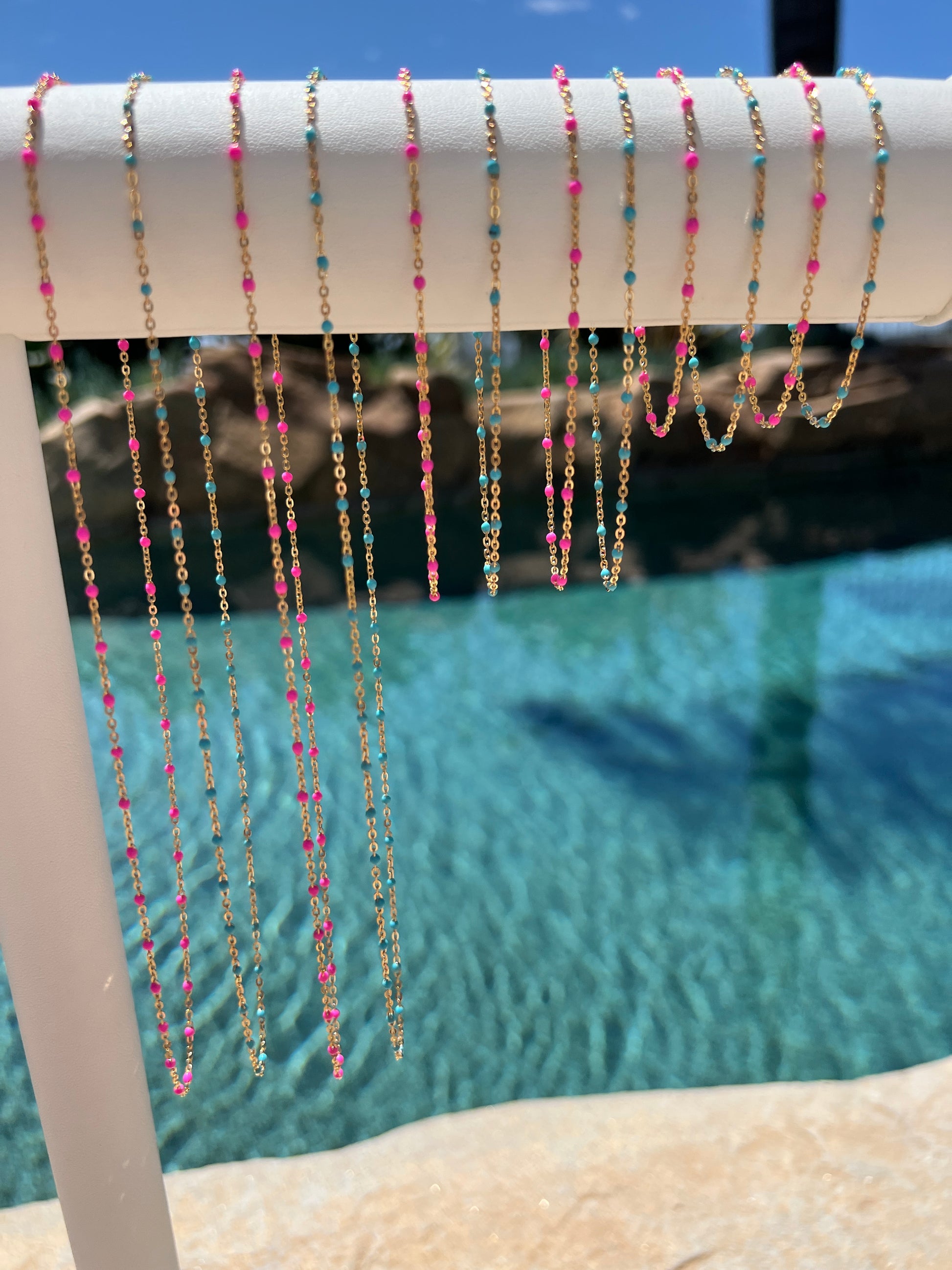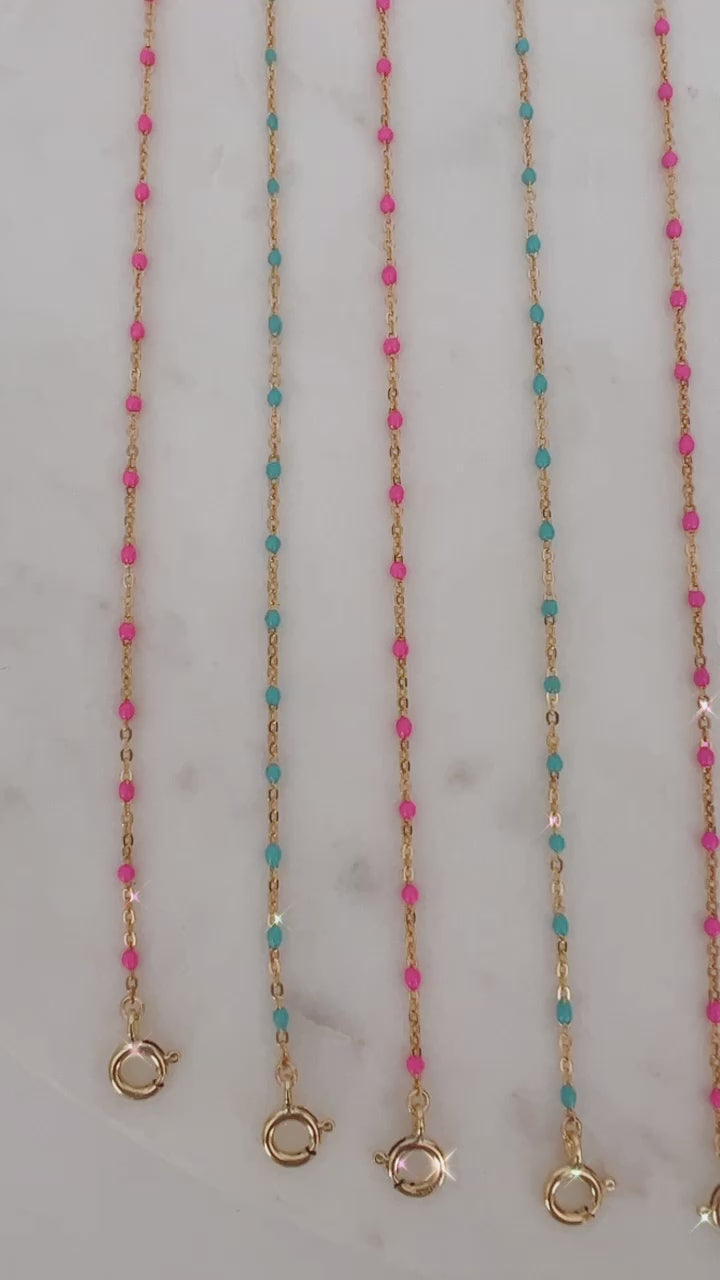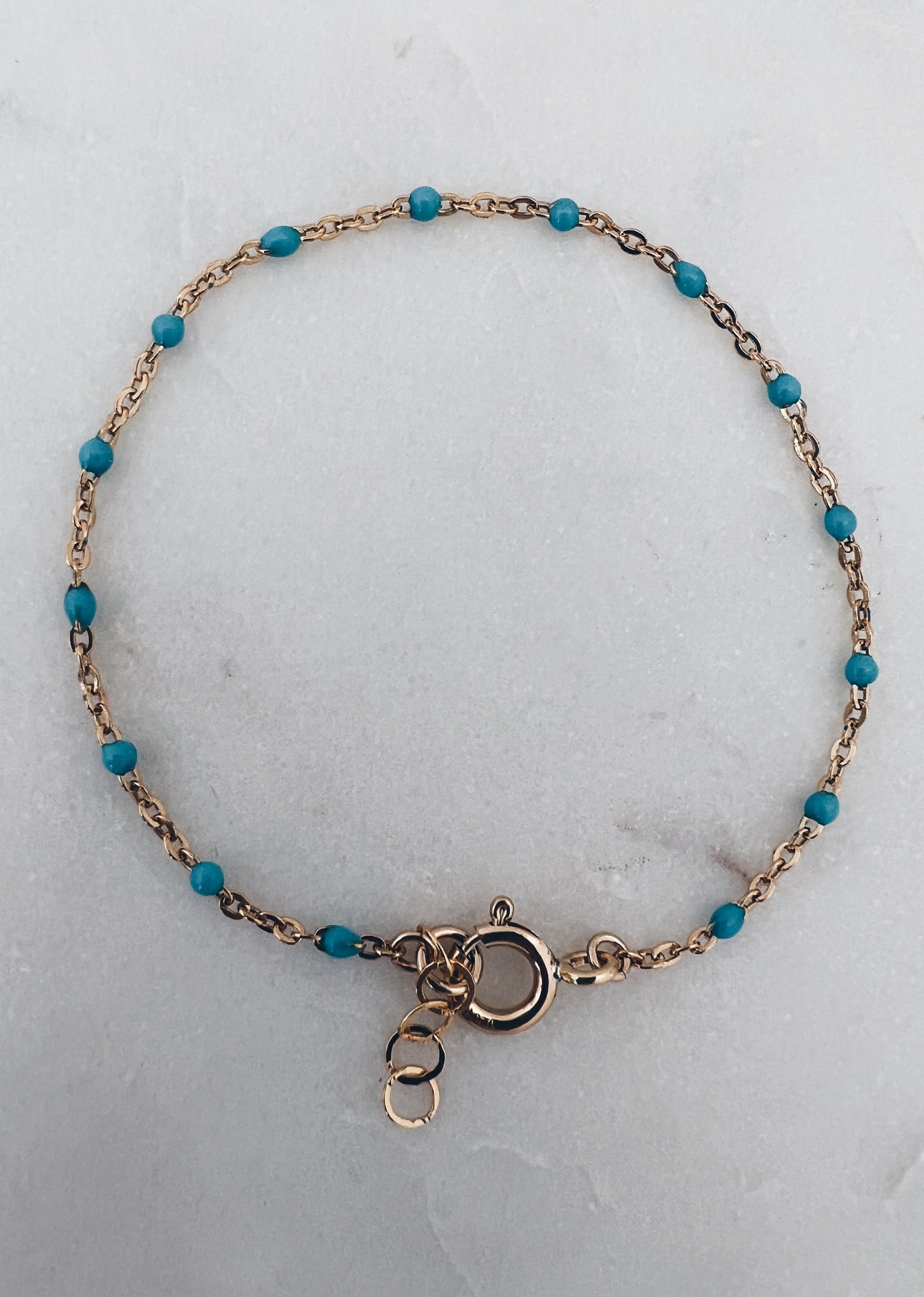 This dainty 14k Gold Filled Dotted Enamel Bead Bracelet is perfect for an instant splash of color! Stack with your favs or wear alone for a minimal look.