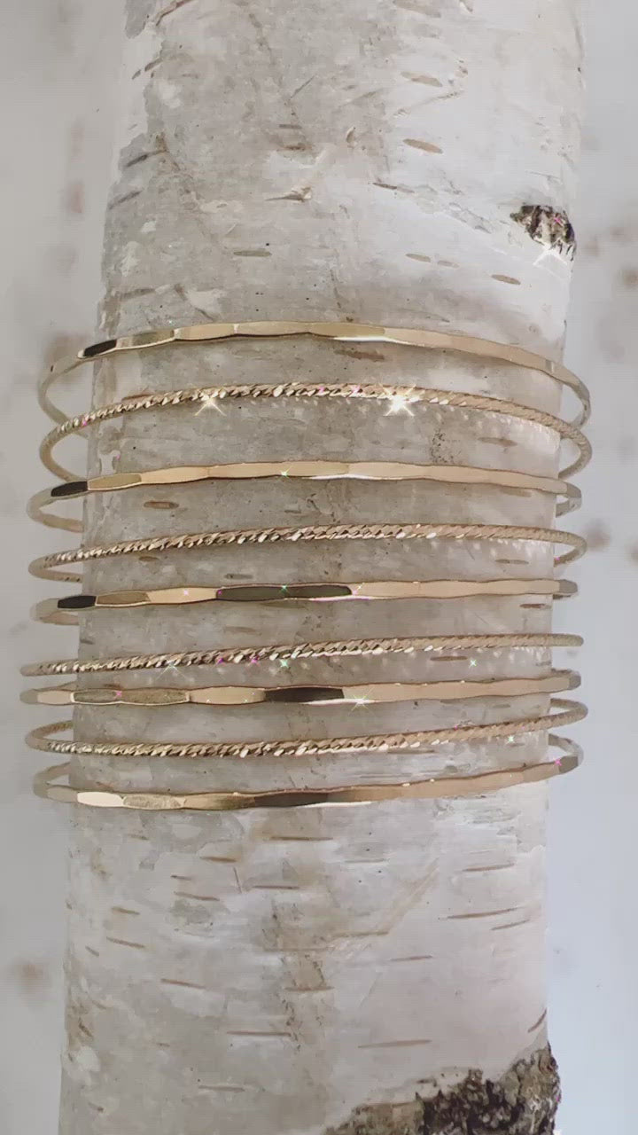 14k gold filled hammered bangle. The perfect layering piece or just as pretty on its own.