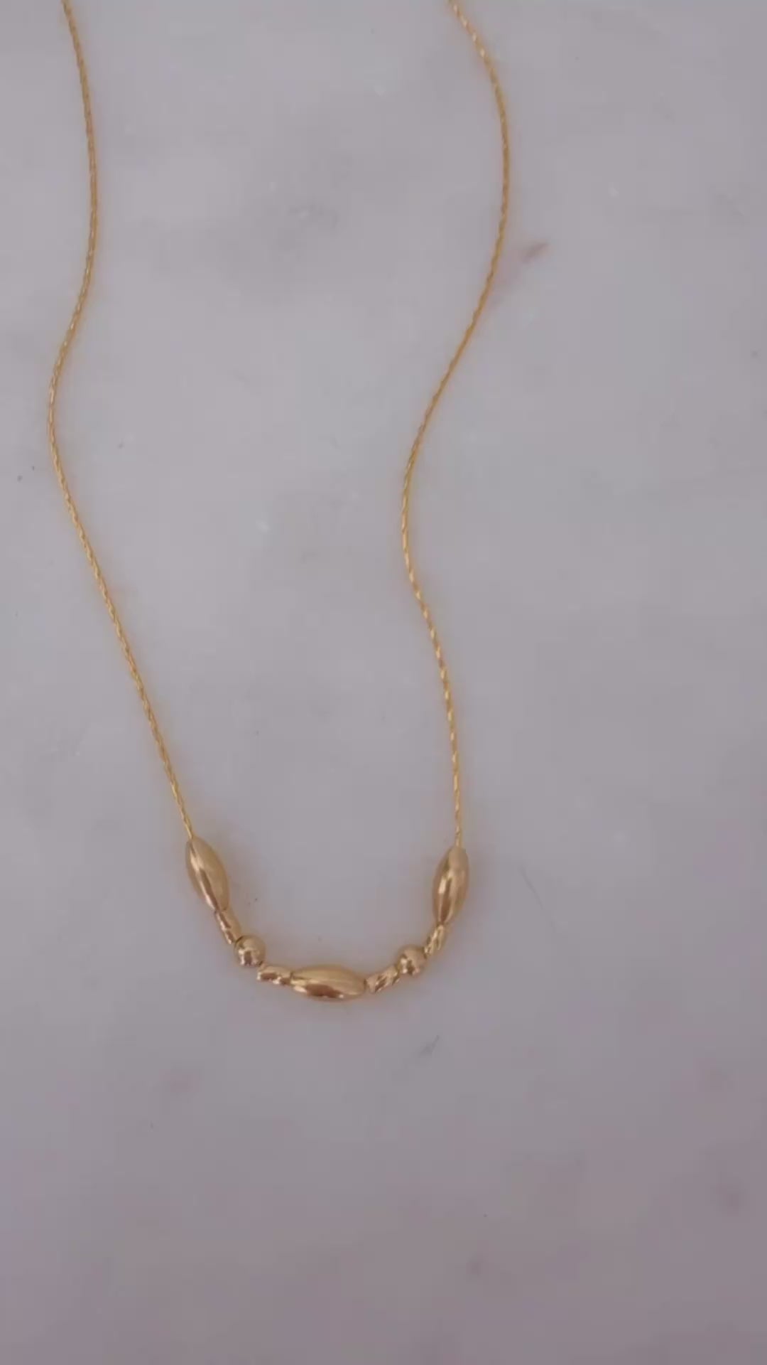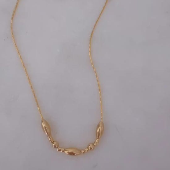 14k Gold Filled Dainty Silk Chain Necklace w/Barrel and Twist Beads