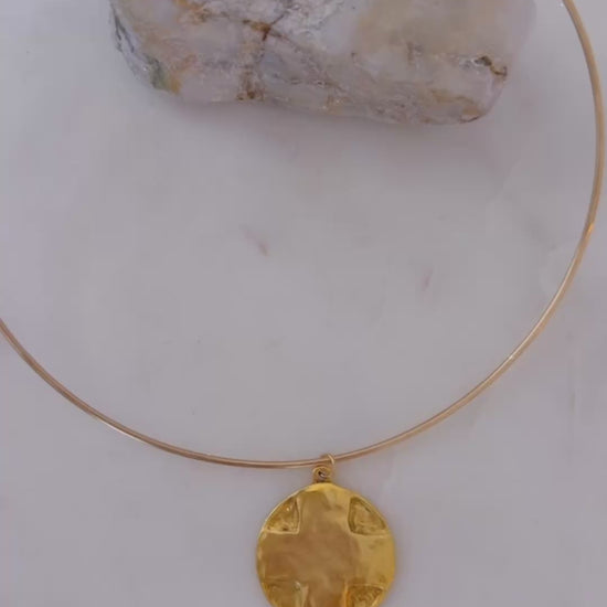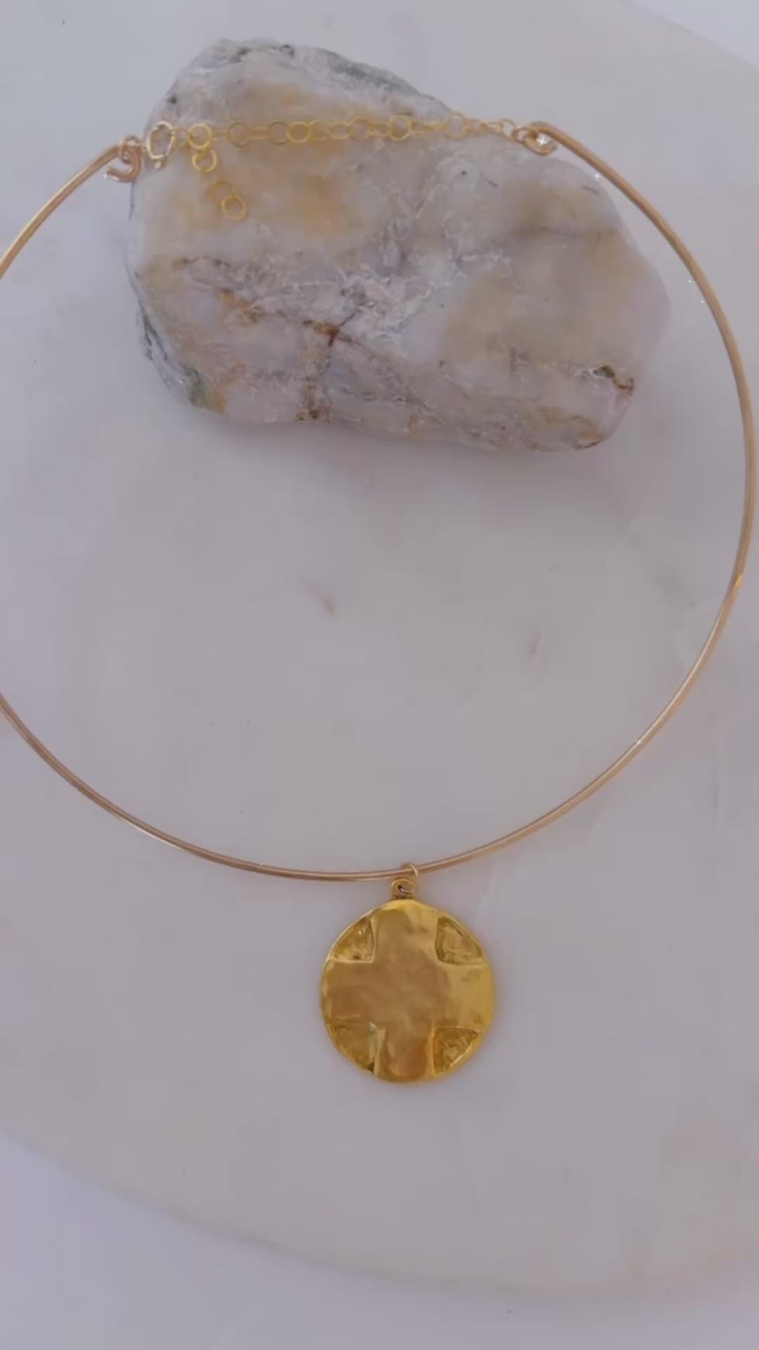 This reversible 14k gold filled wire collar choker lets you switch up your vibe in a flash! One side features a classic cross, while the flip reveals the Lords Prayer, making it a meaningful statement piece. Hand forged by me with tarnish-proof, waterproof wire, it’s gentle on sensitive skin and comfy for all-day wear.