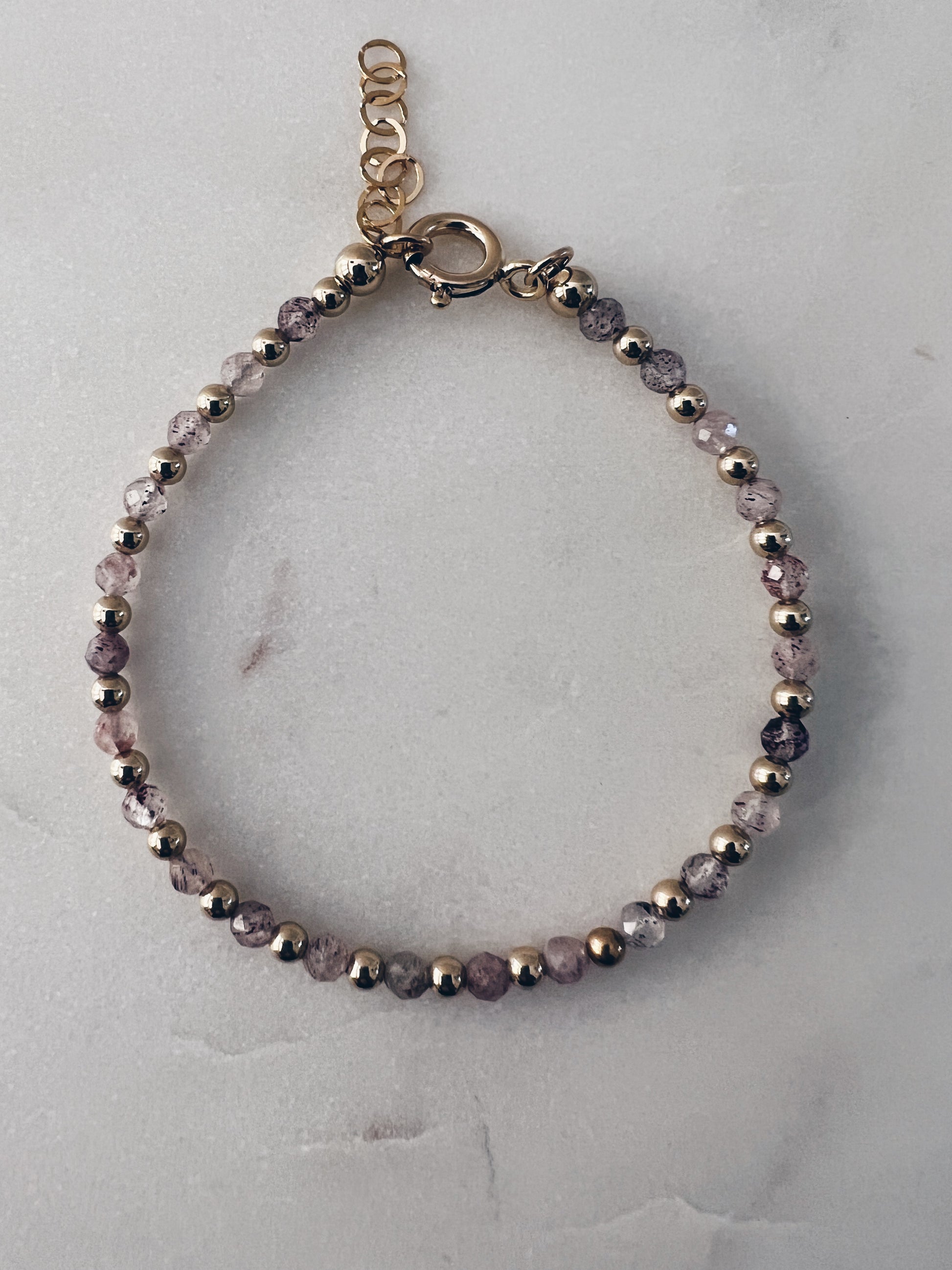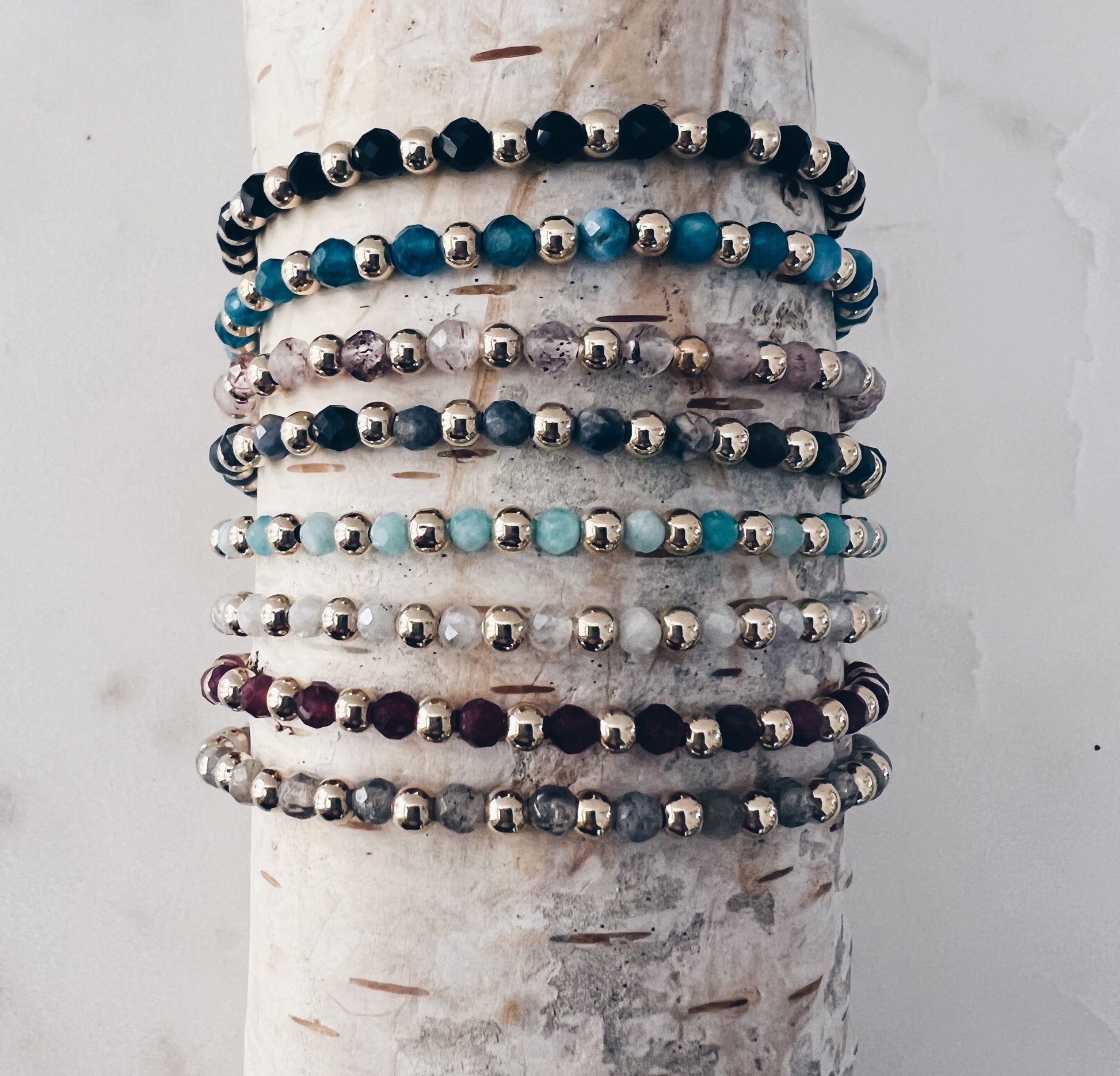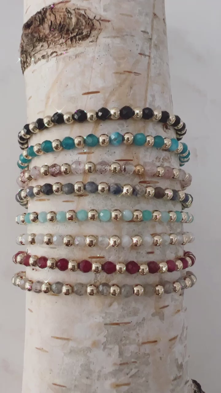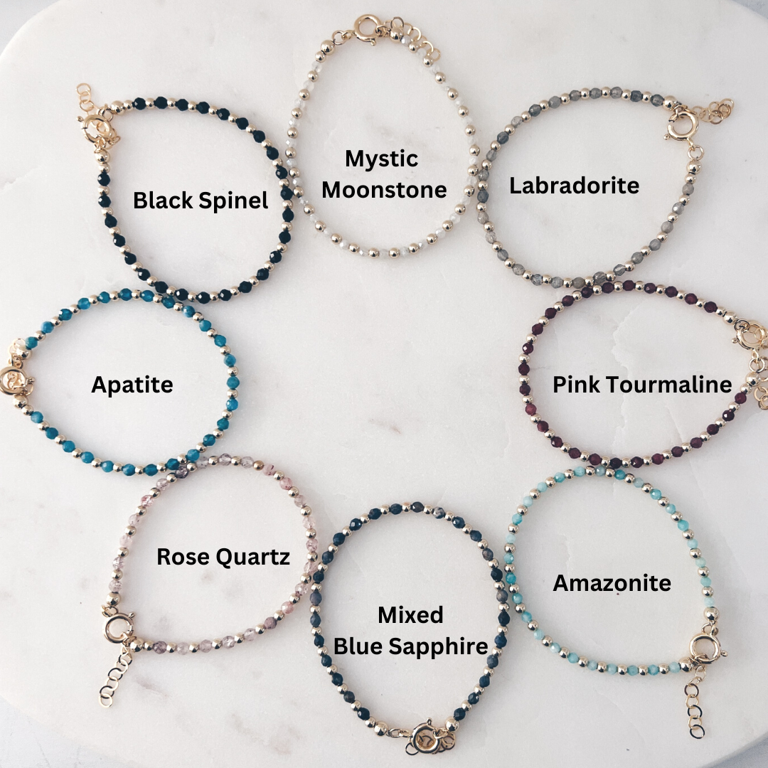 Feel the power of natural energy with our Aura Gemstone Bracelets. Handmade with tiny healing gemstones and 14k gold filled beads, this bracelet will help you reconnect to the world around you. Find harmony and balance in your life with our dainty, yet powerful, stunning bracelets.