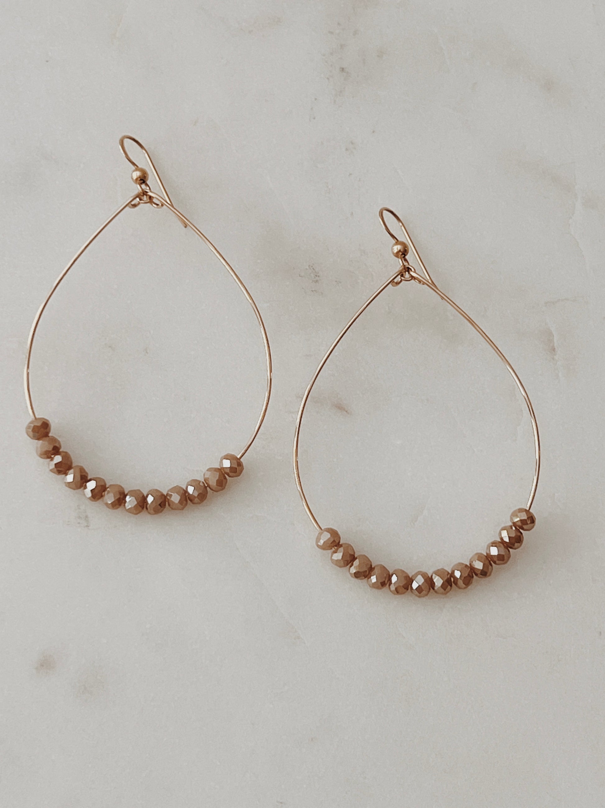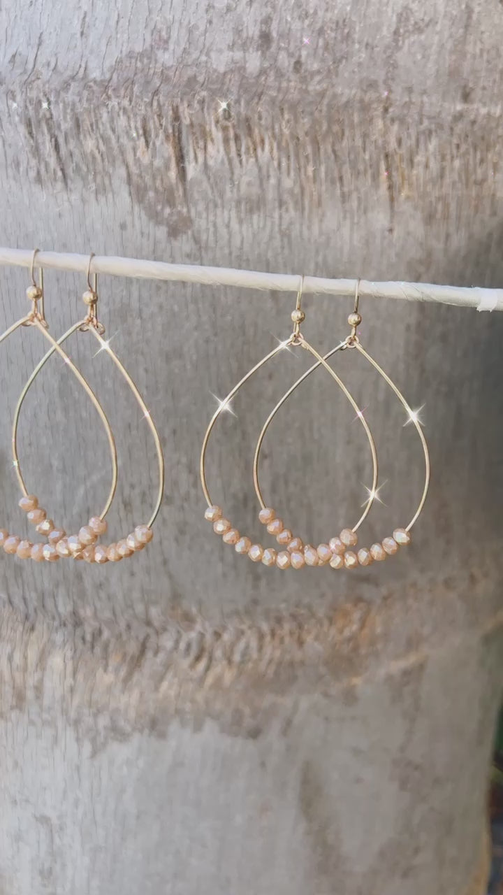 Handforged 14k gold filled hoops adorned with sparkly champagne crystal beads. Perfect for everyday wear...dressed up or down!