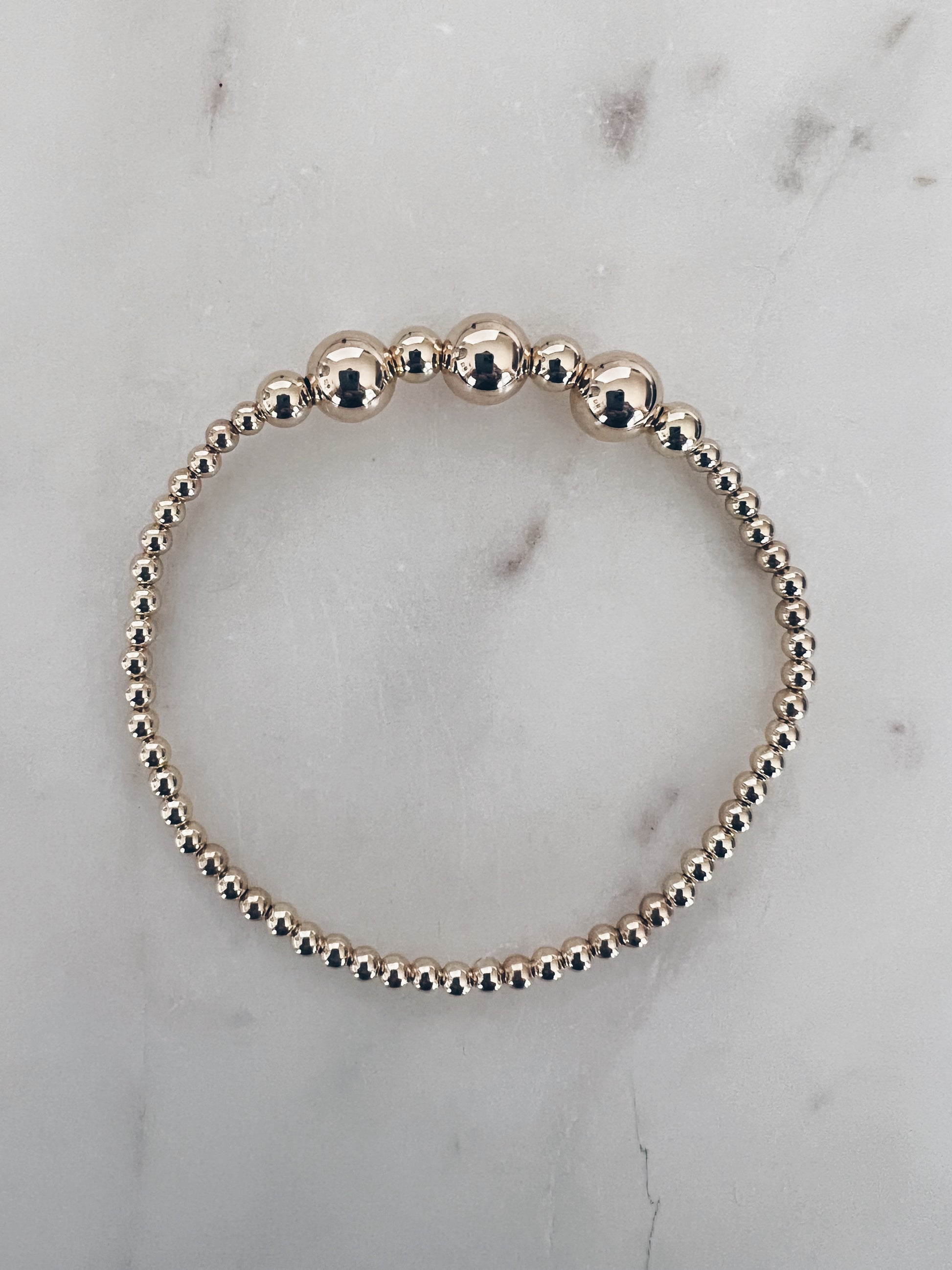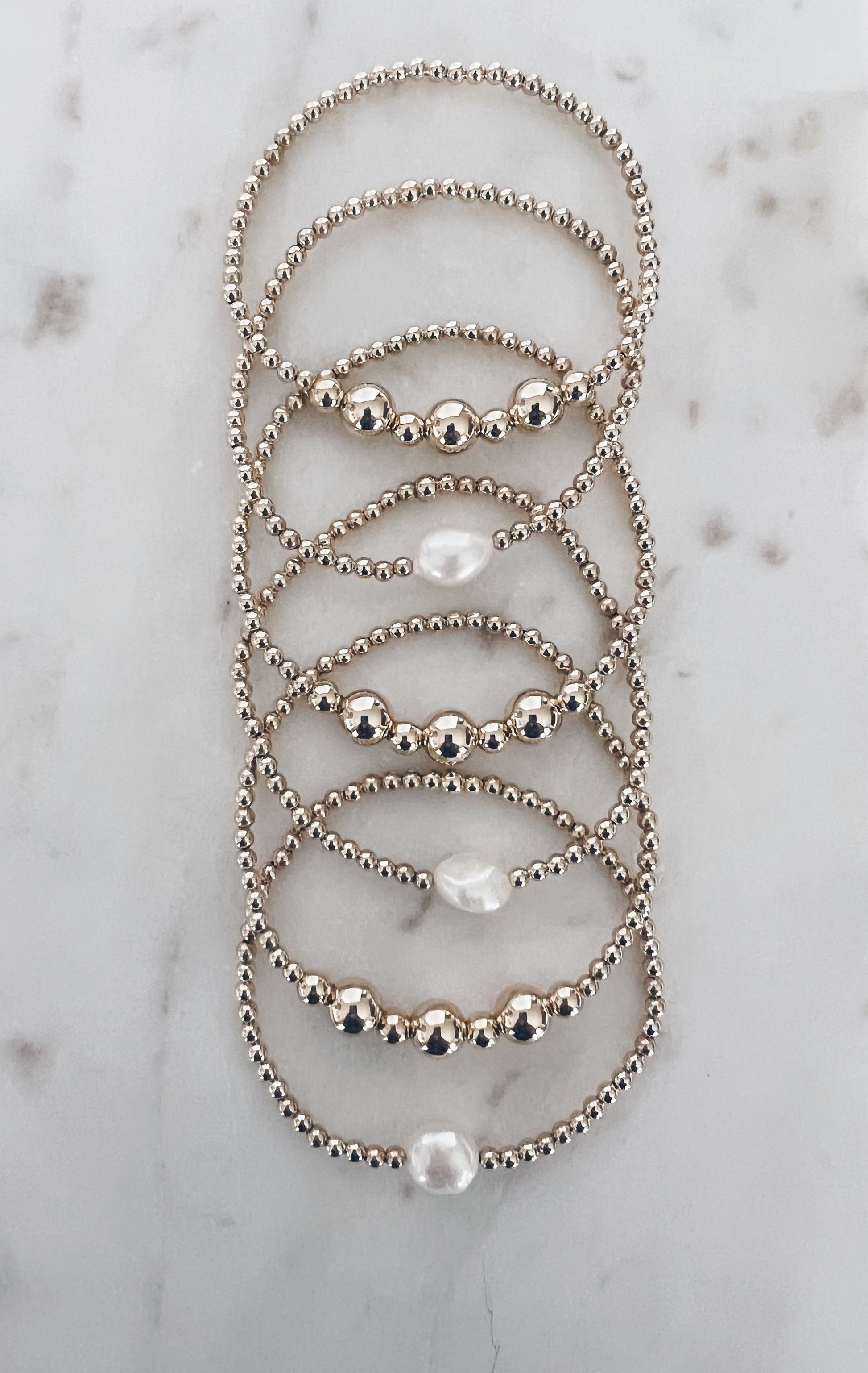 A smaller version of our popular Monarch wrap. The perfect simple bracelet to stack with your favs or wear as a single. A mix of 8mm, 5mm and 3mm 14k gold filled or sterling silver (not shown) beads.
