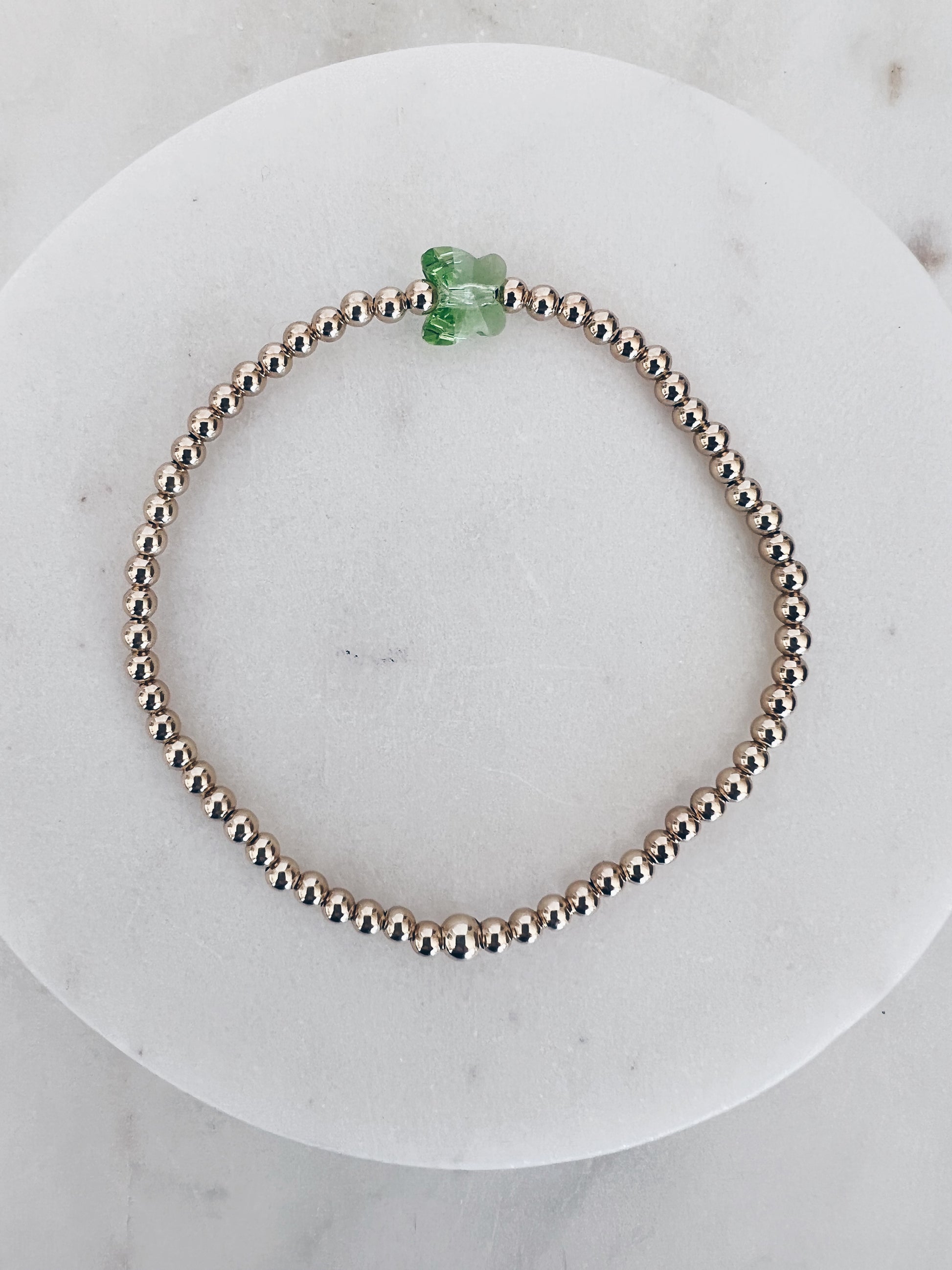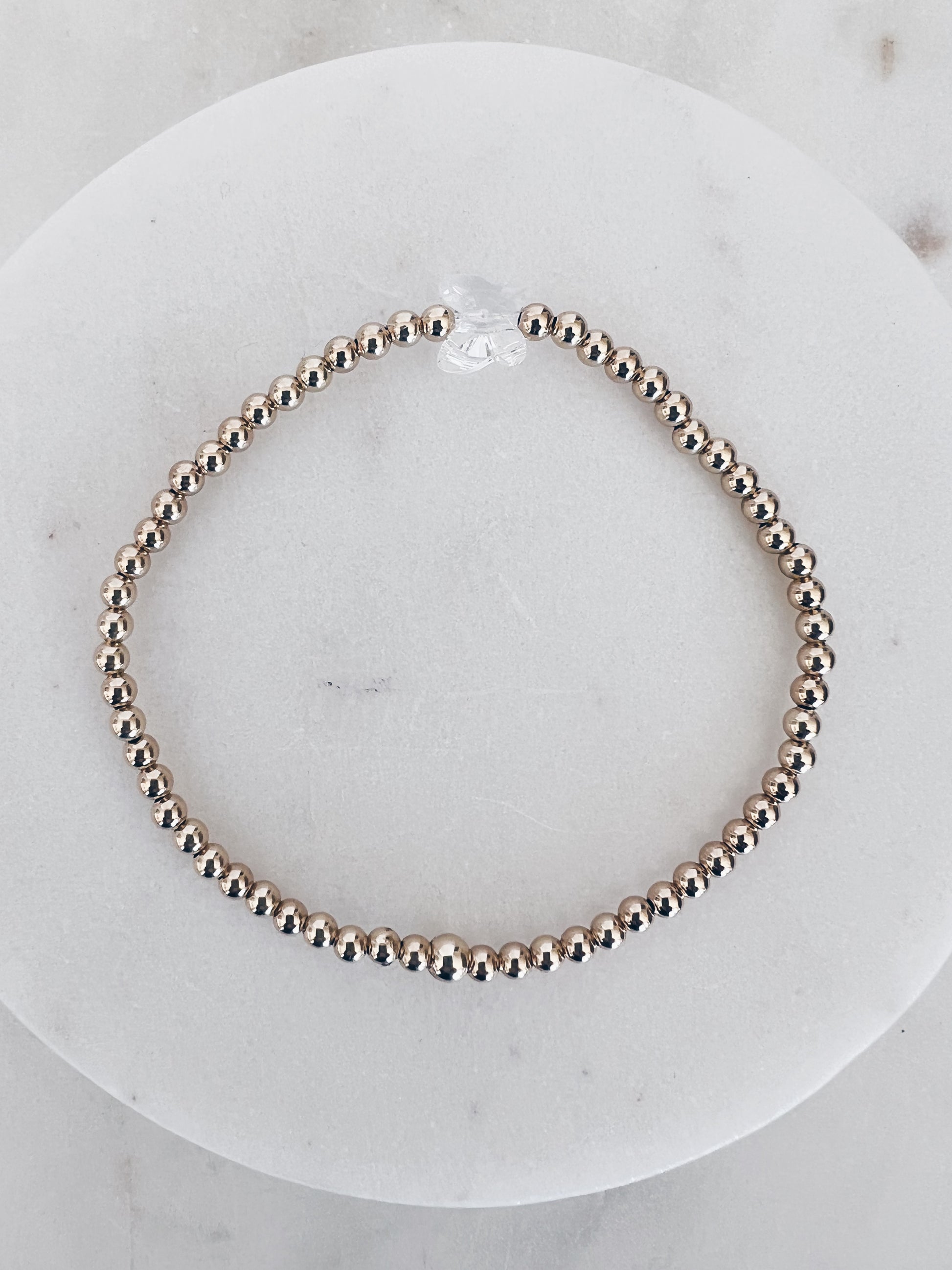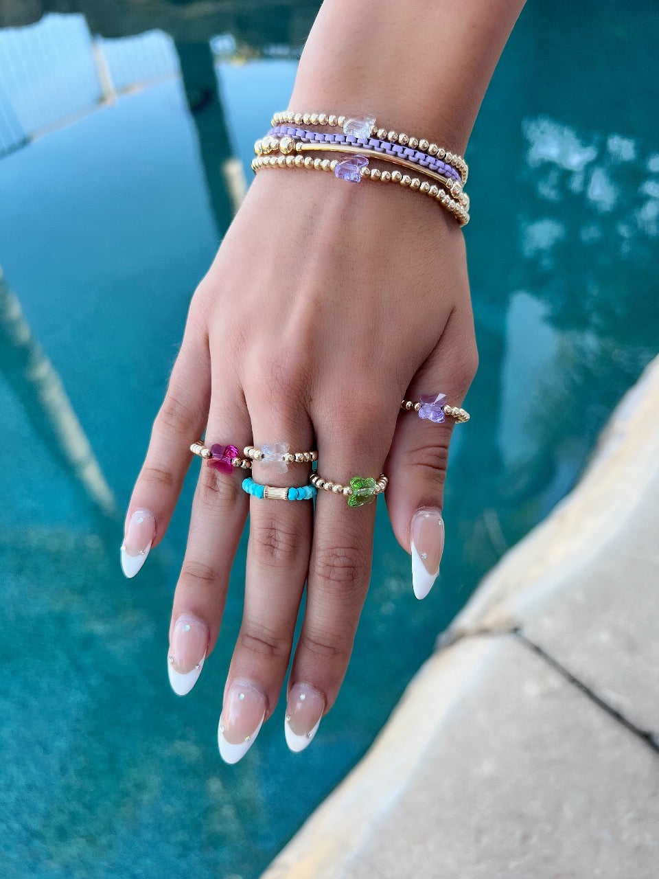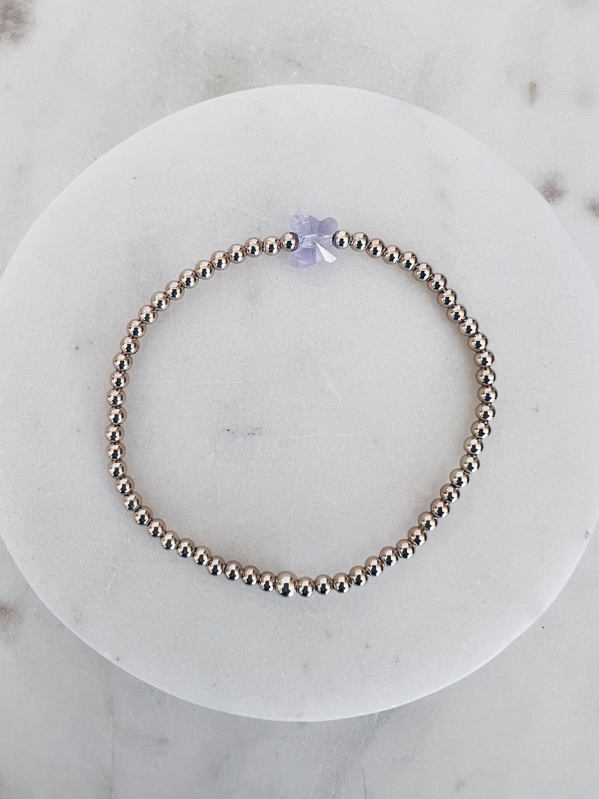14k gold filled beads and a sparkly Swarovski crystal butterfly that are hand beaded to create this pretty bracelet. Perfect for Mama or someone special and their mini's.
