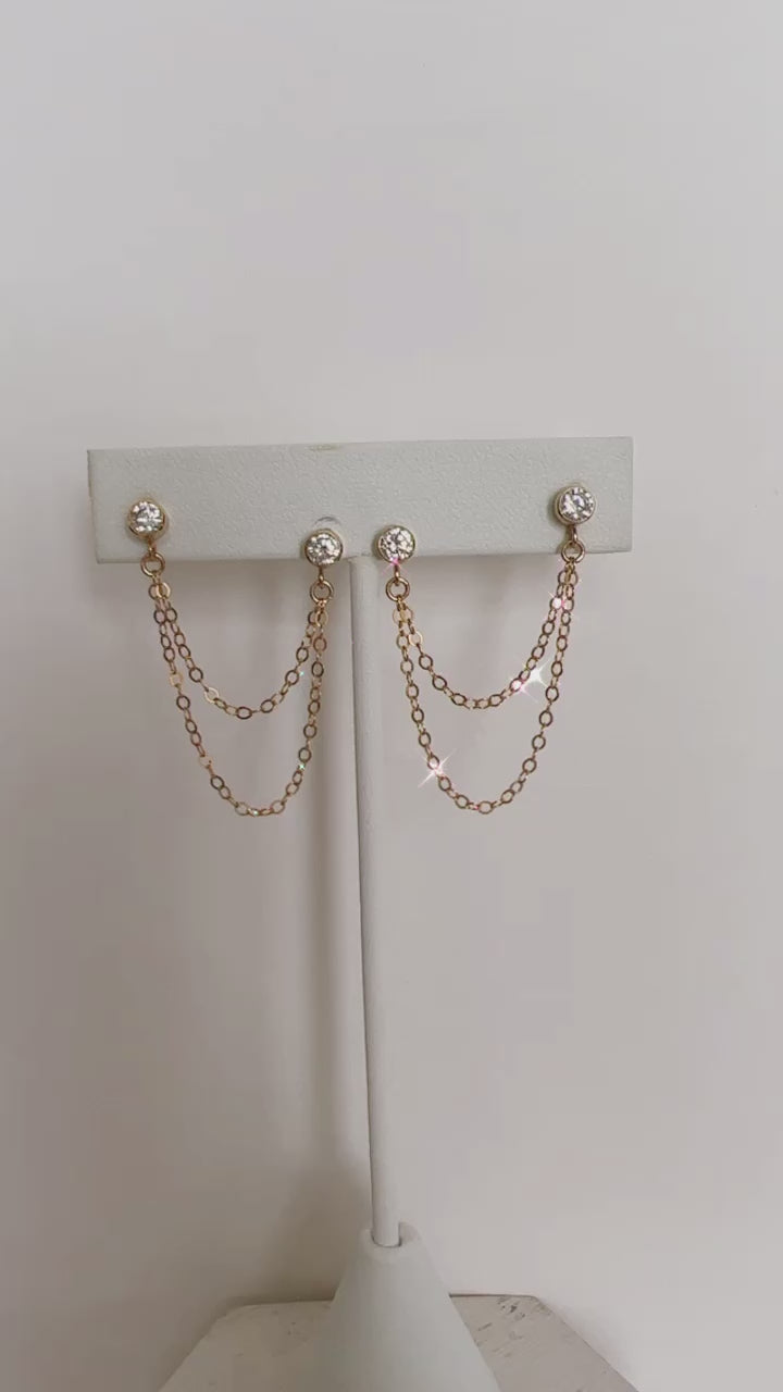 The perfect sparkle to your earring stack game. Handmade with 14k gold filled cz posts and chain.