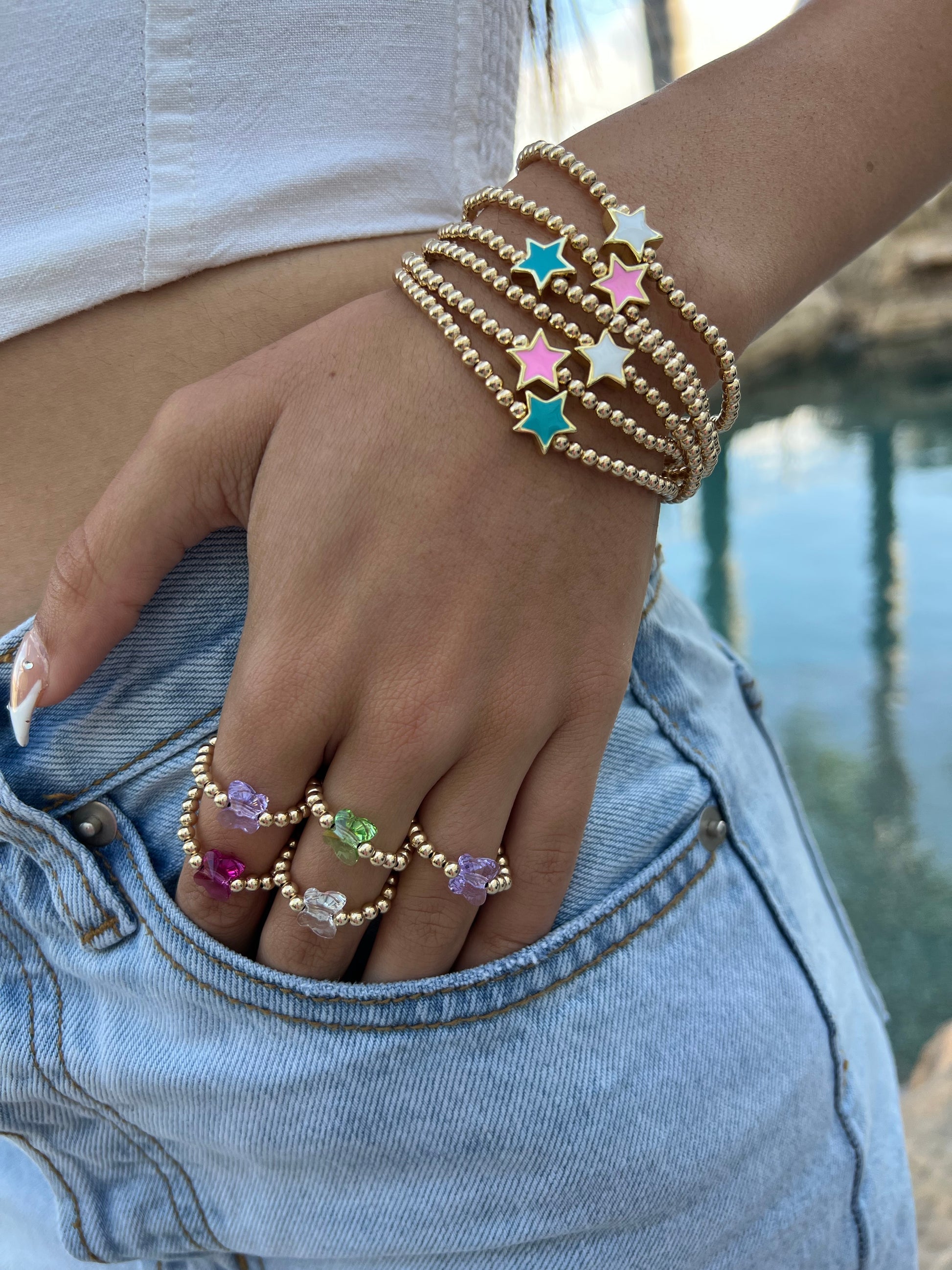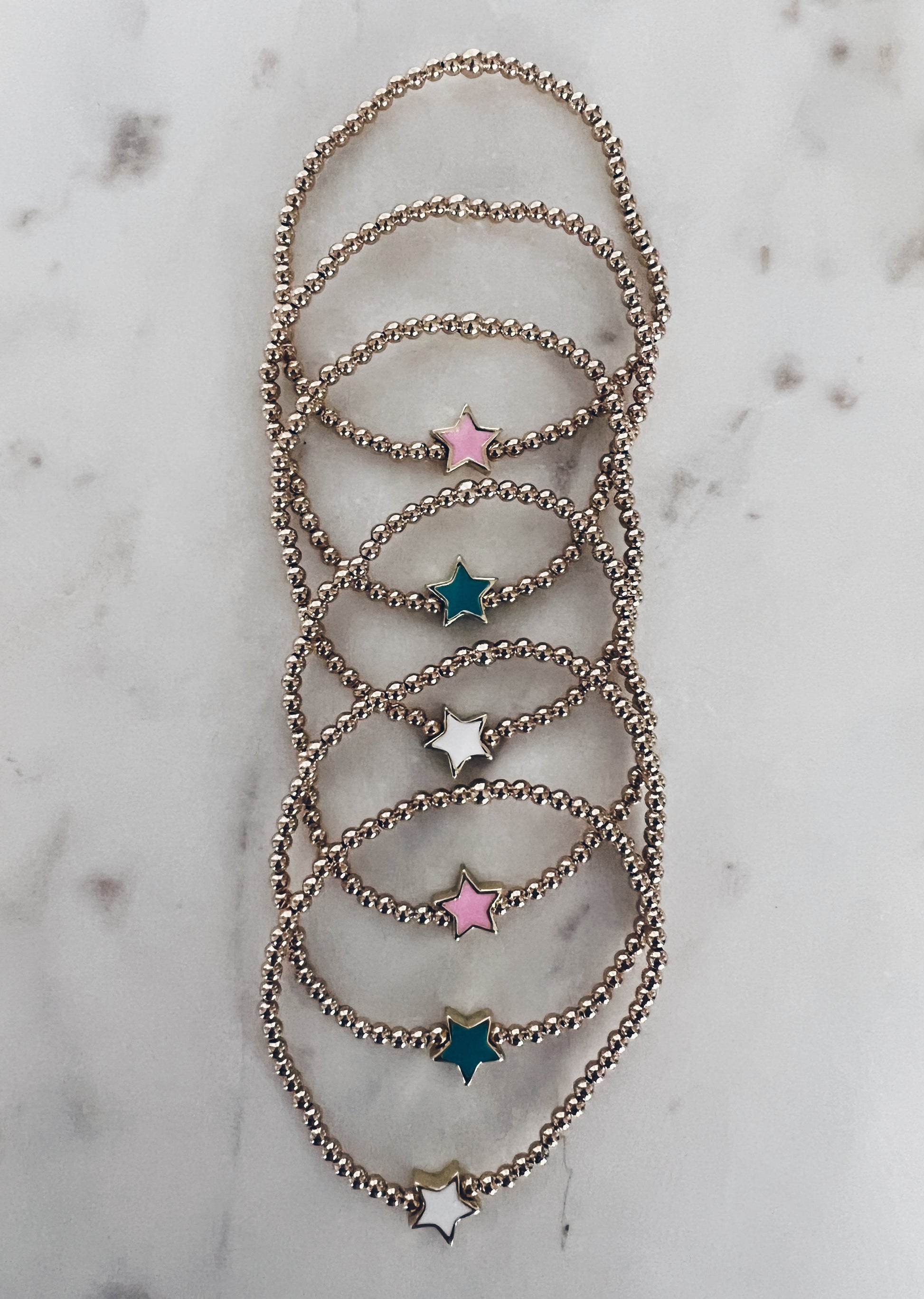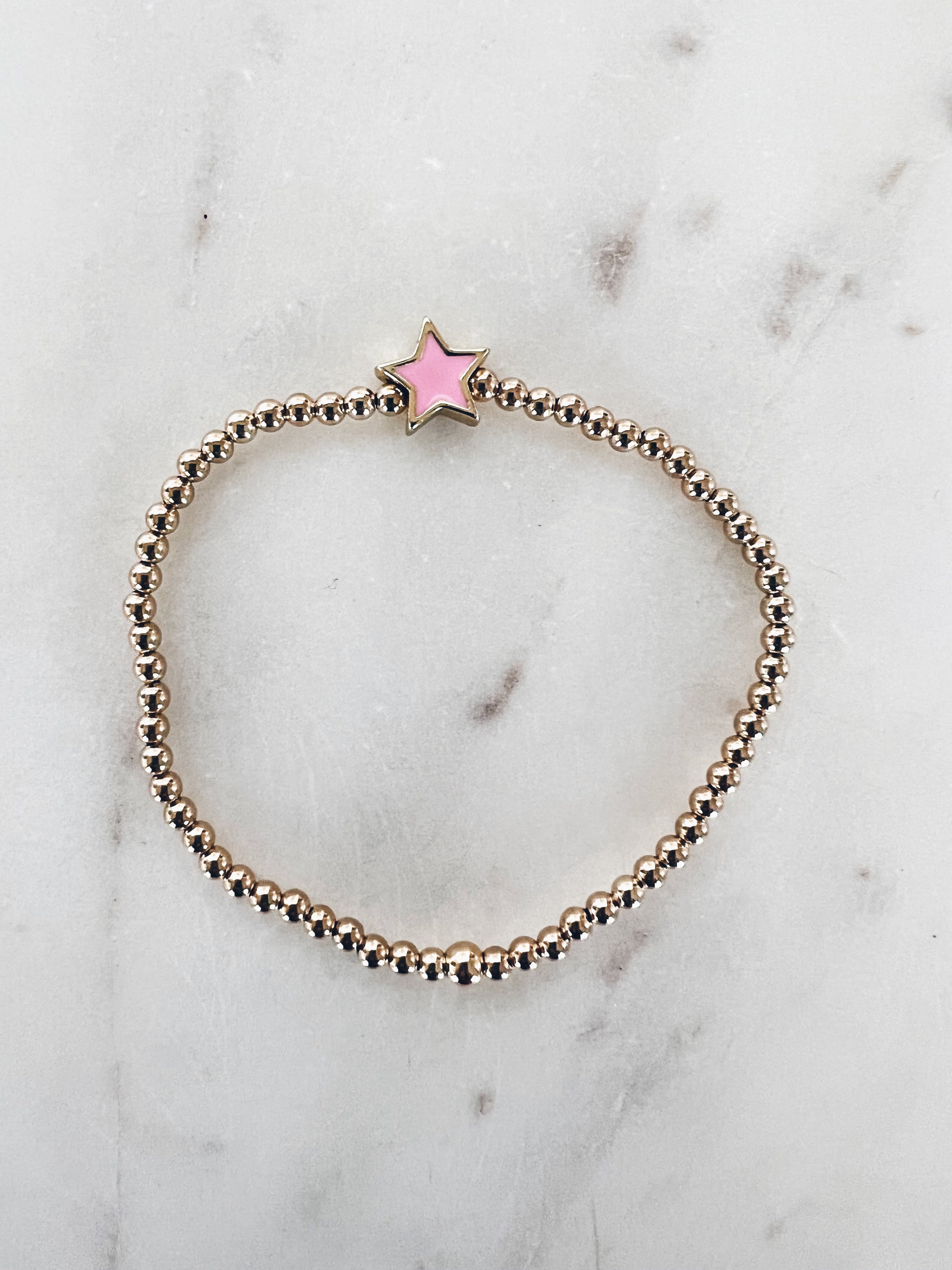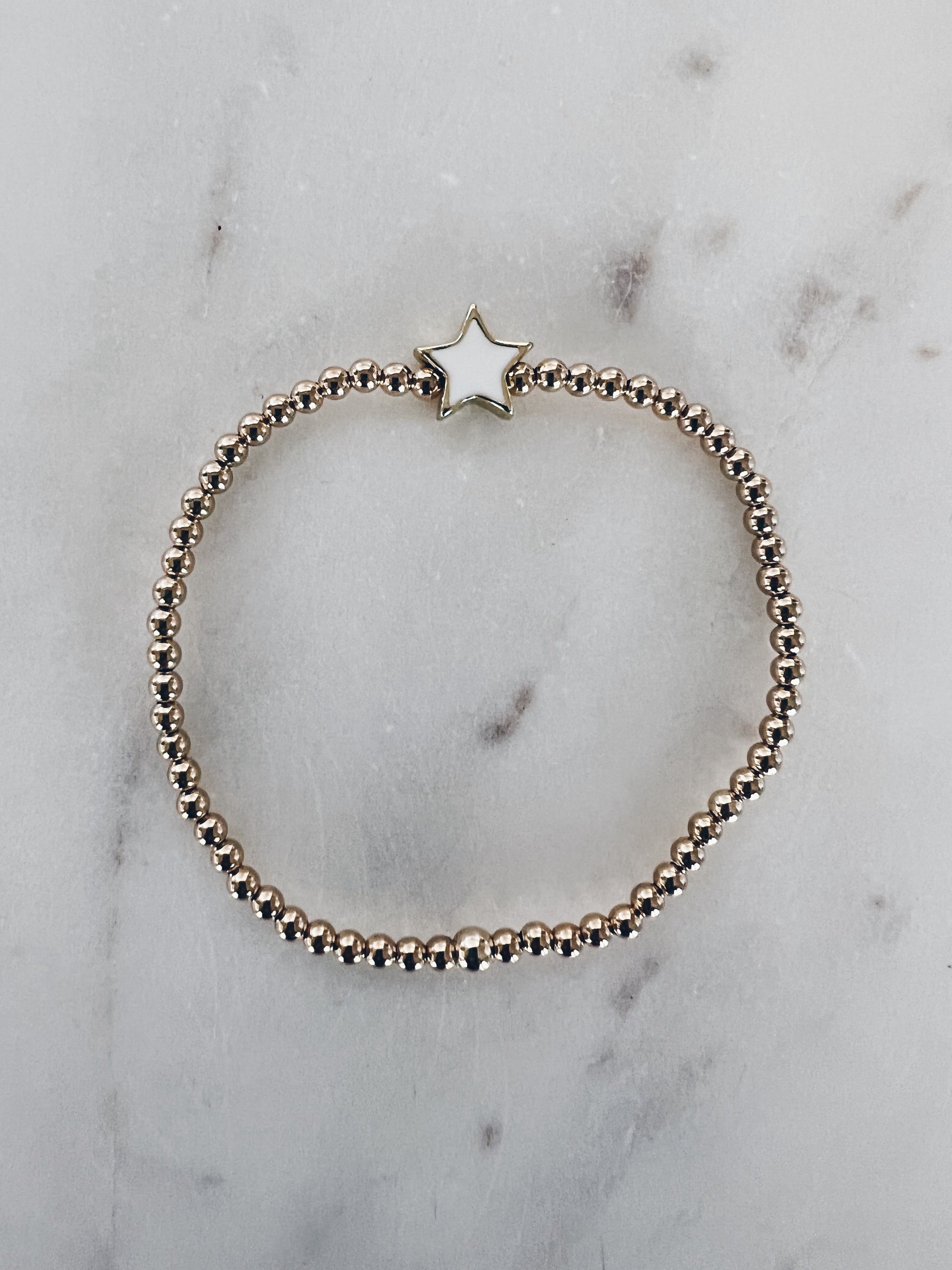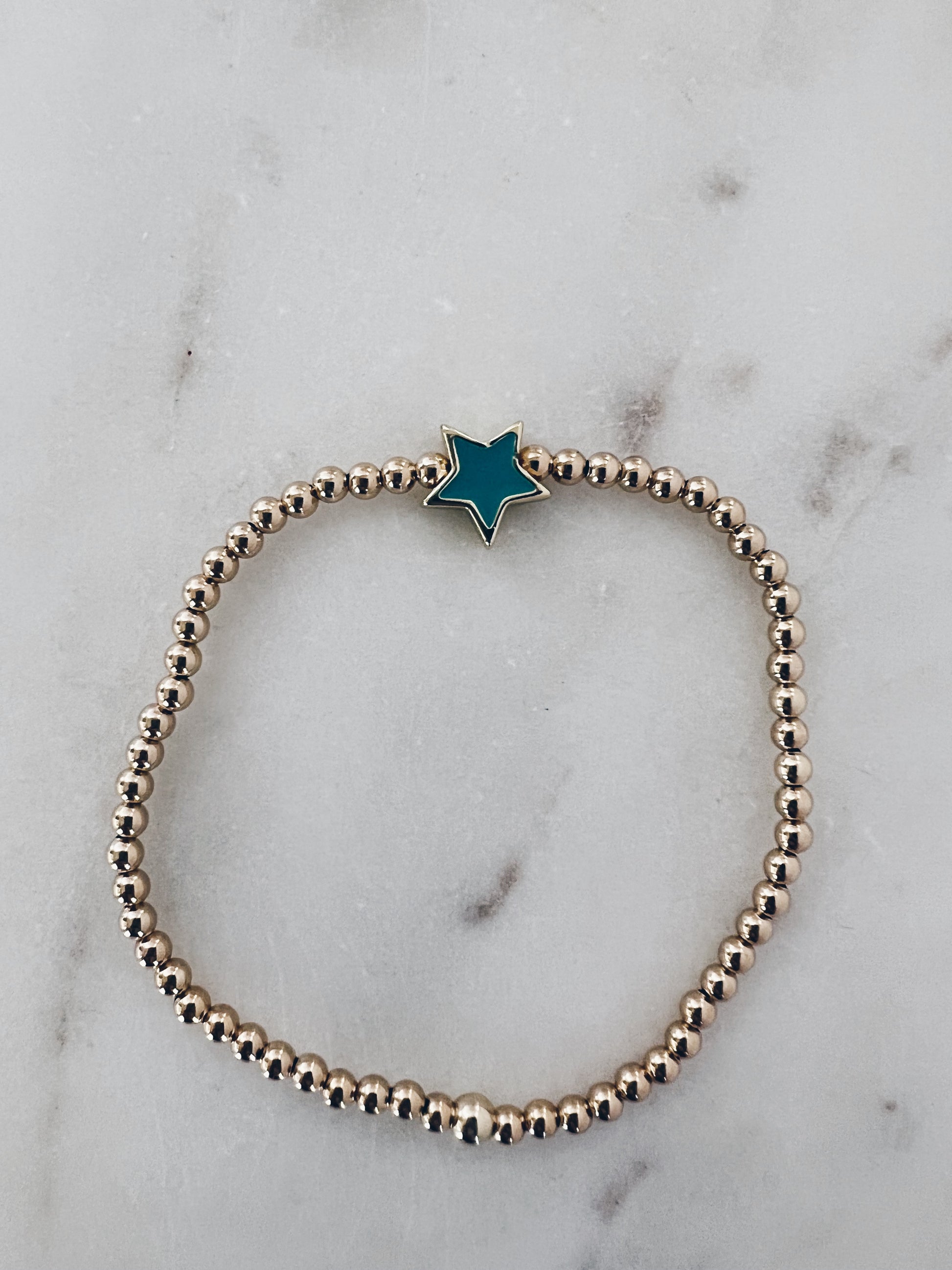 14k gold filled beads and an enamel gold plated colored star that are hand beaded to create a pretty bracelet.