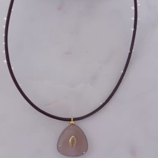 Handcrafted by me, this rich espresso leather features a stunning smoky agate gemstone crowned with a sparkling crystal center. The round cord design sits comfortably at the neck, making it ideal for layering or wearing solo. Whether you're dressing up or keeping it casual, this piece adds just the right amount of mystique and shine to your everyday style.