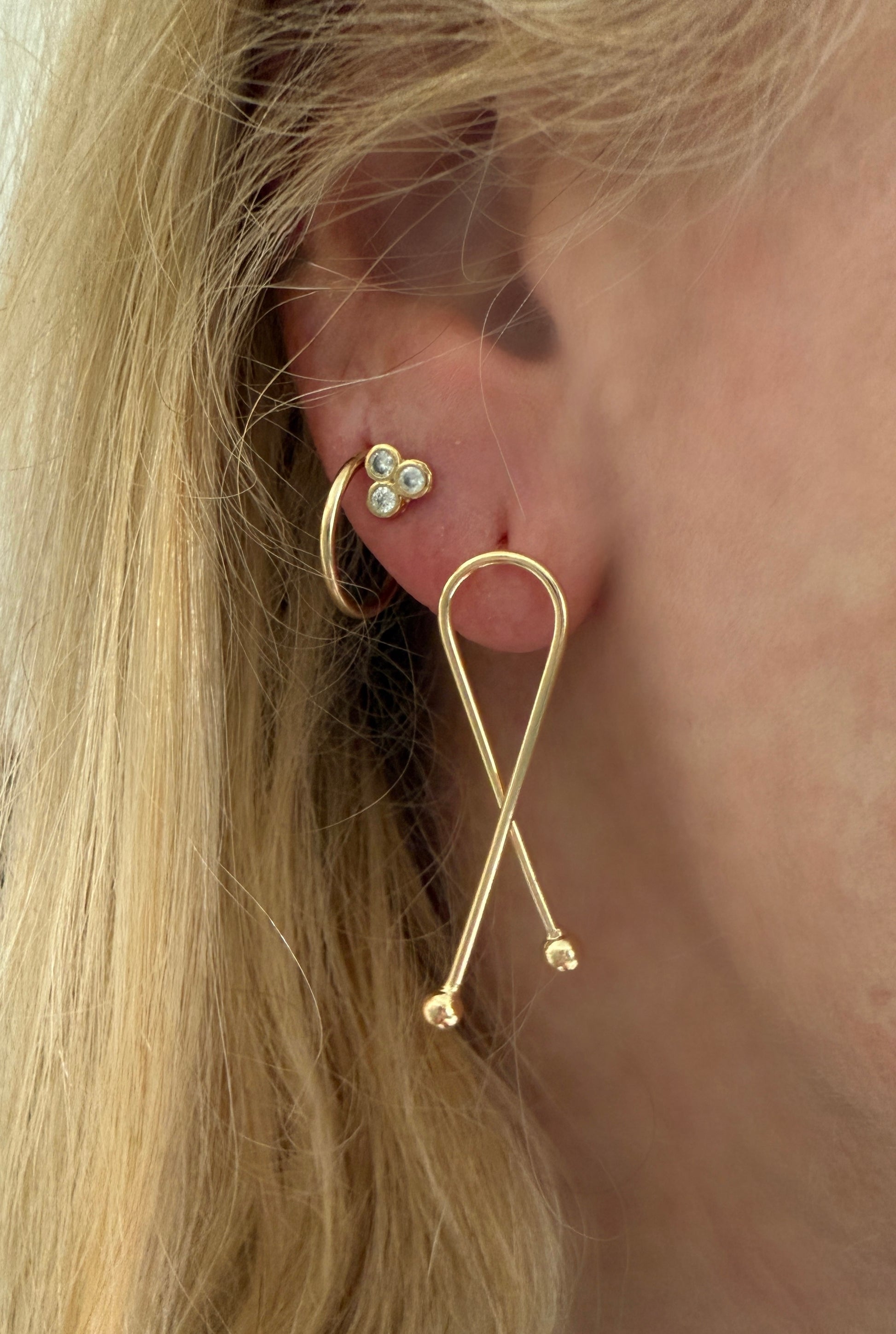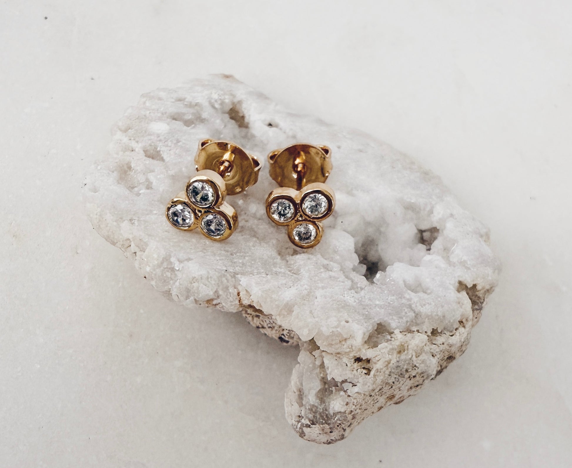 These tiny studs earrings are a cluster of three sparkly cz's in a bezel setting. Perfect on their own or stacked with your faves.