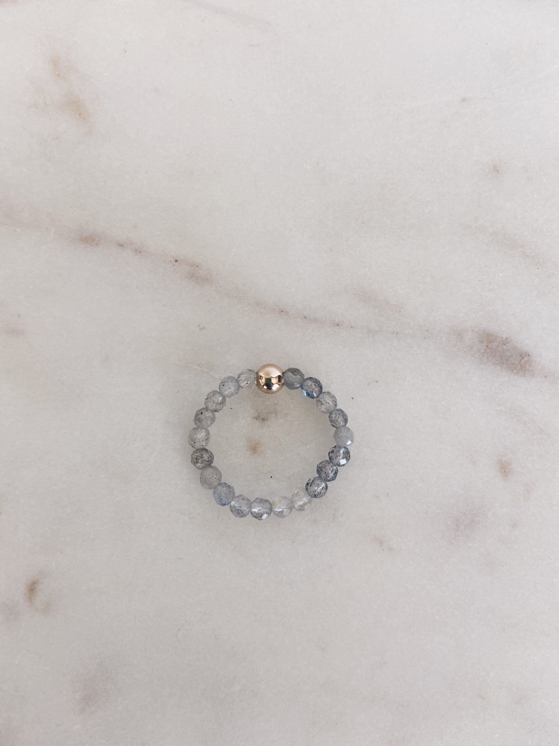 A pretty and dainty ring made with sparkly semi precious labradorite gemstone beads and a 14k gold filled bead.