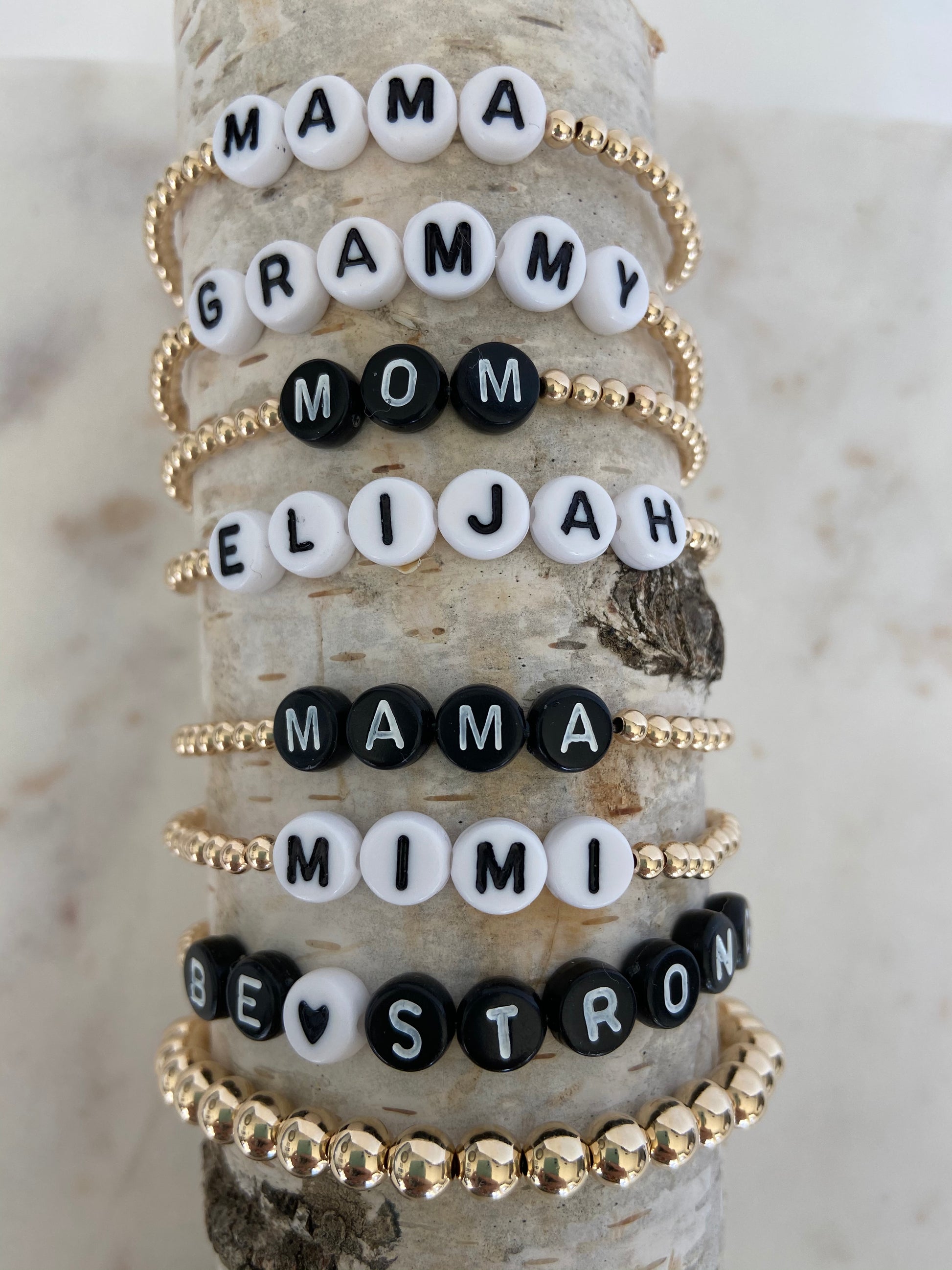 Choose between Black or White Beads with a custom or following words: