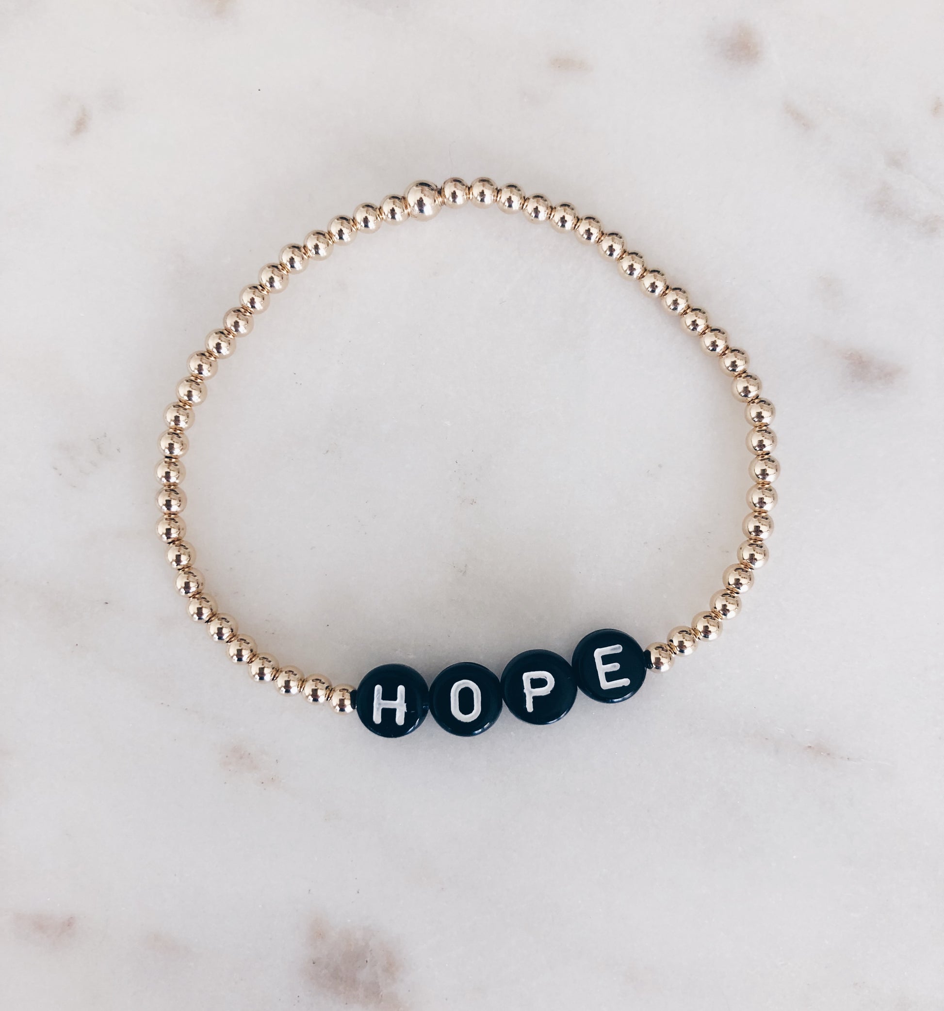 14k gold filled beads adorned with inspiring words.