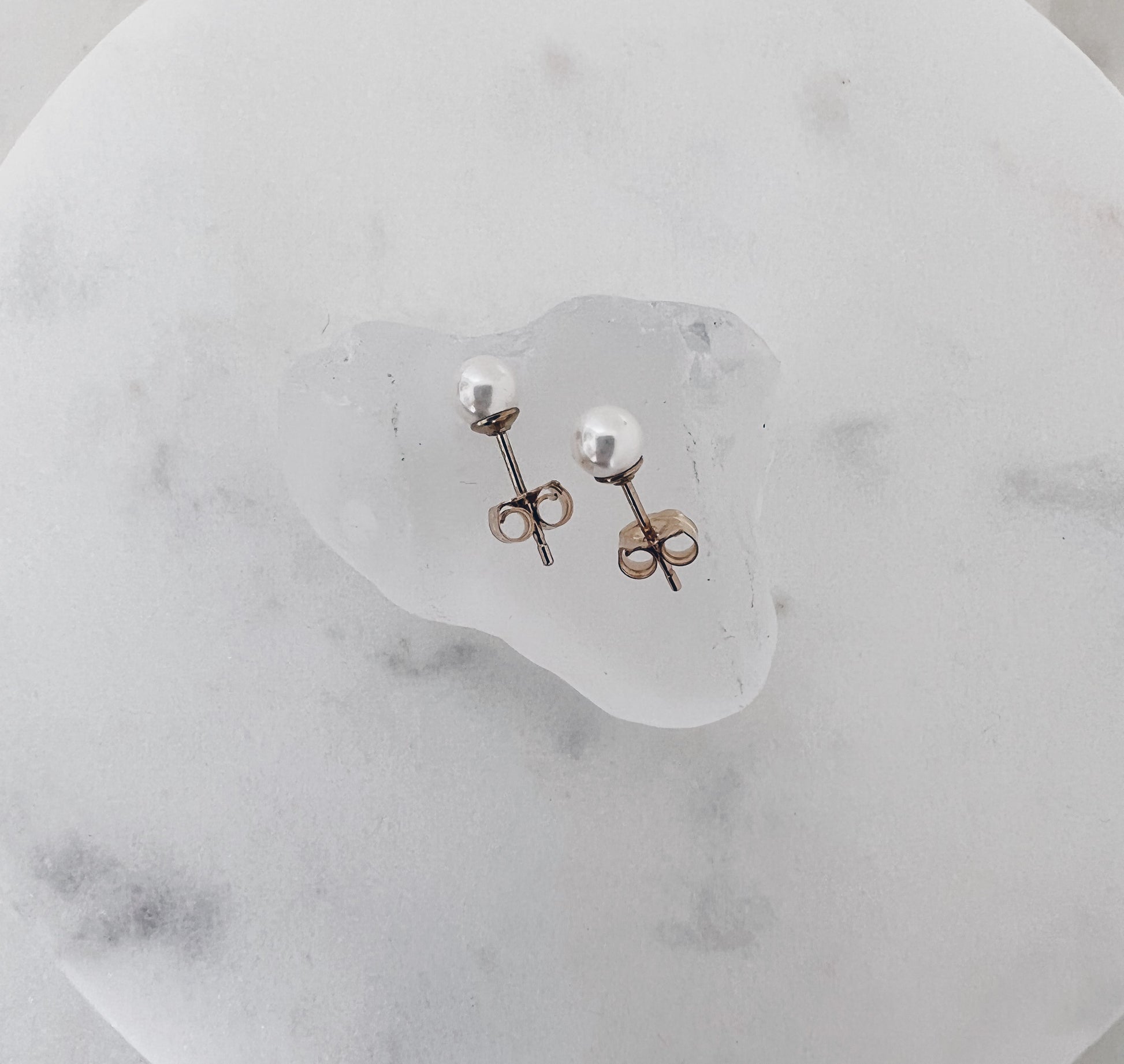 Mini crystal pearls with 14k gold filled posts and backings. Size is about 4mm. Perfect worn alone or stacked!