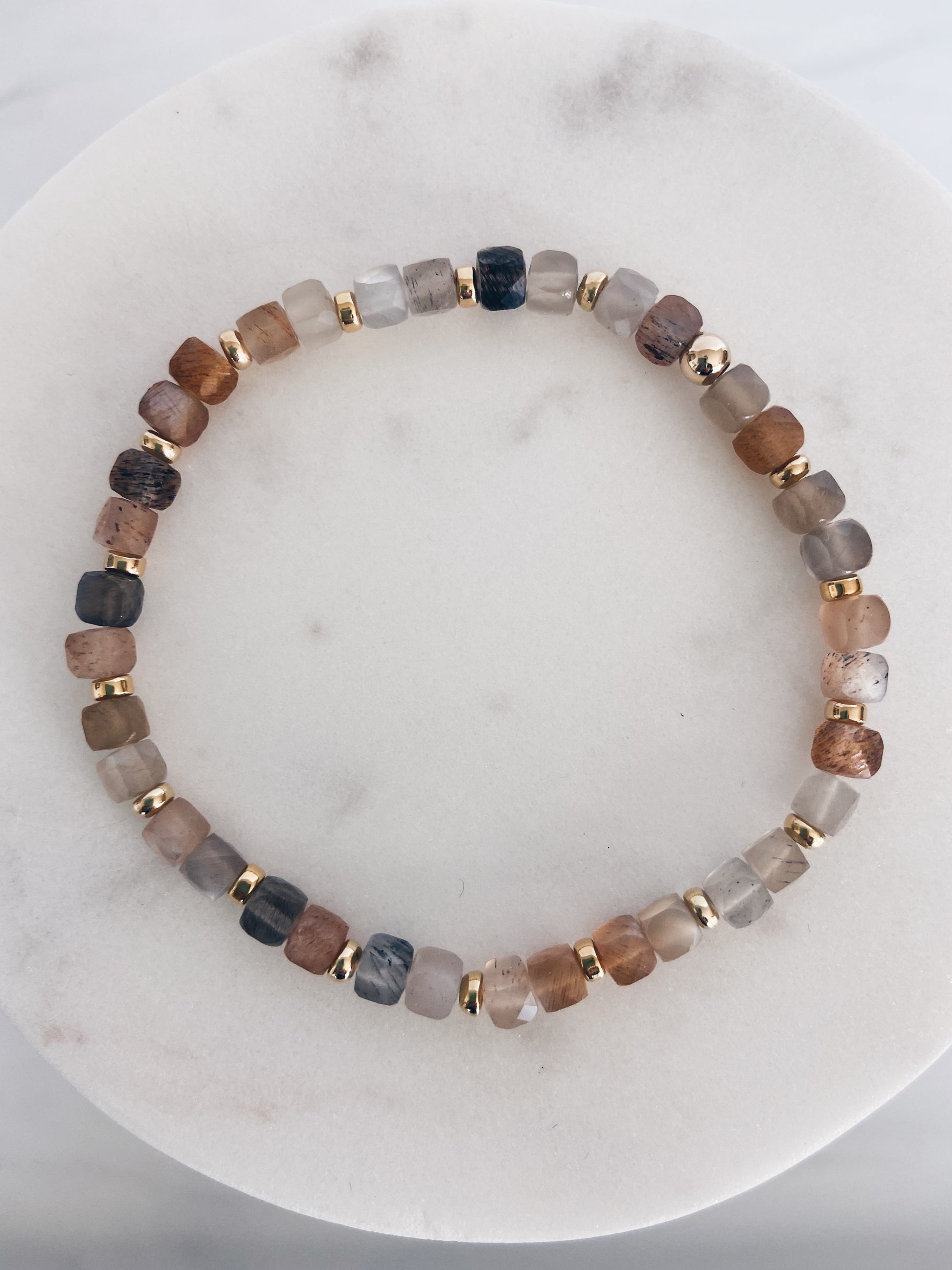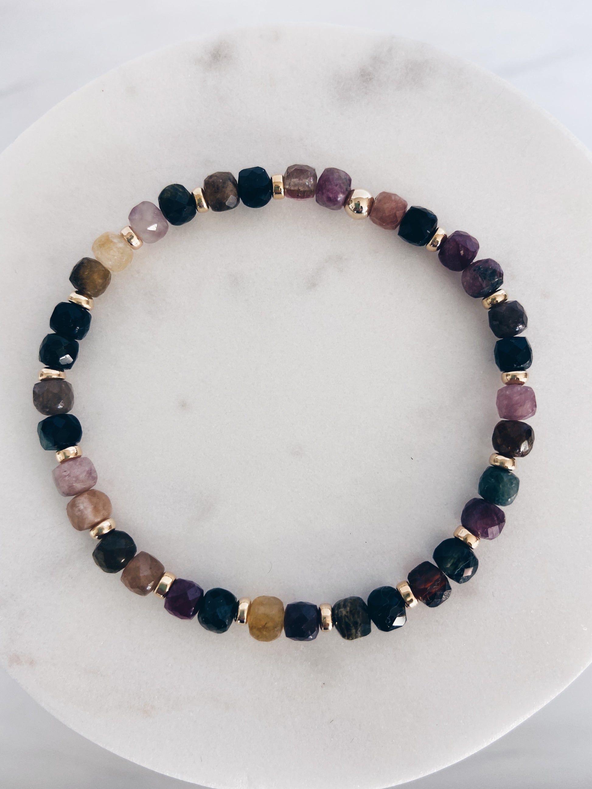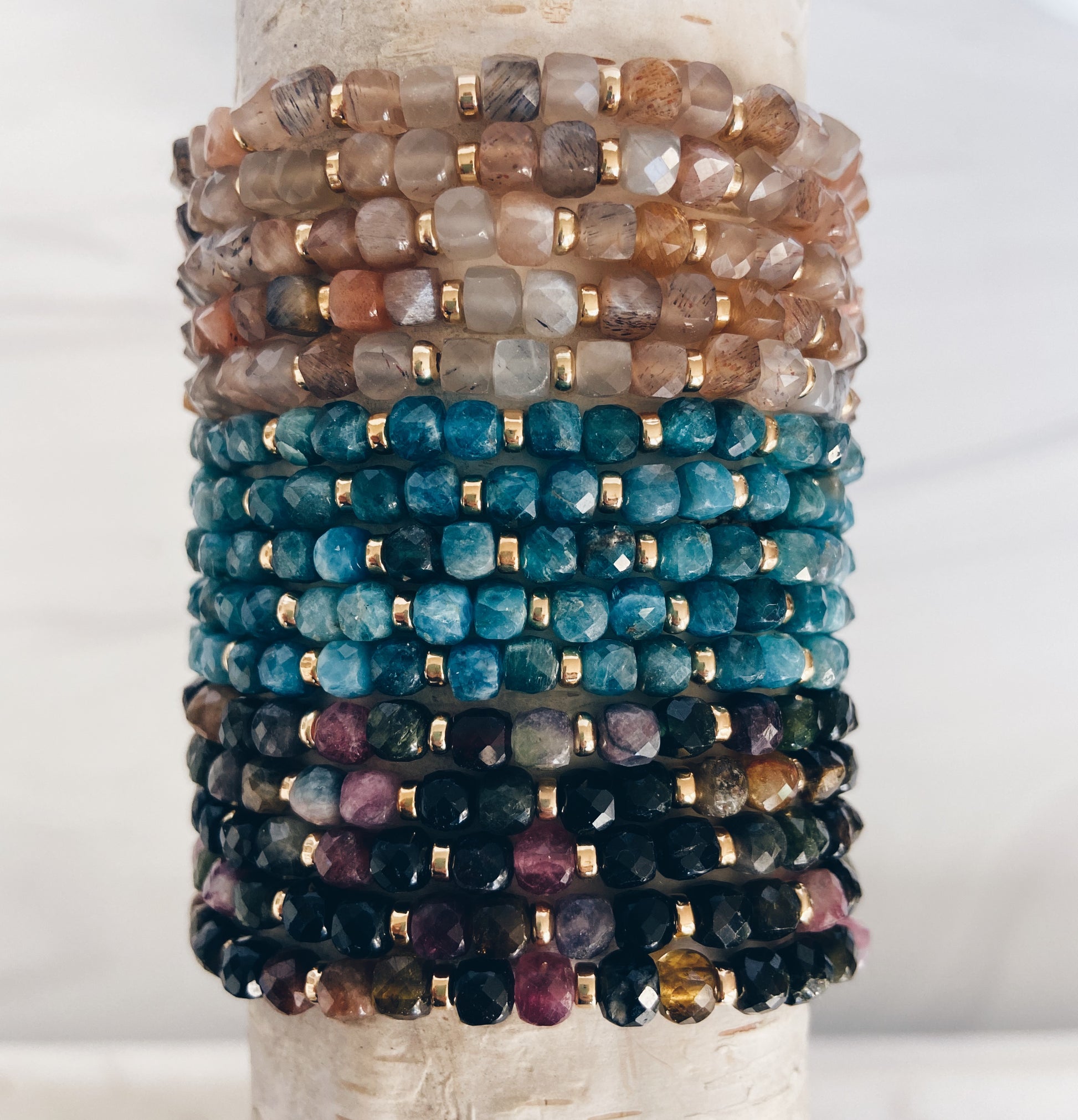 This beautiful bracelet is handmade with sparkly faceted semi-precious square gemstones and tiny 14k gold filled beads. Perfect on it's own or stacked with your favs!