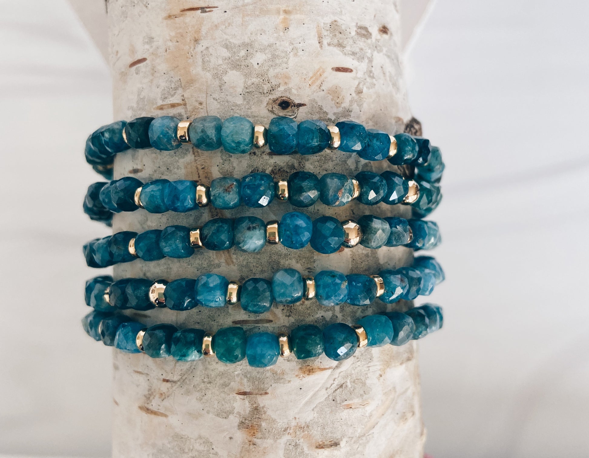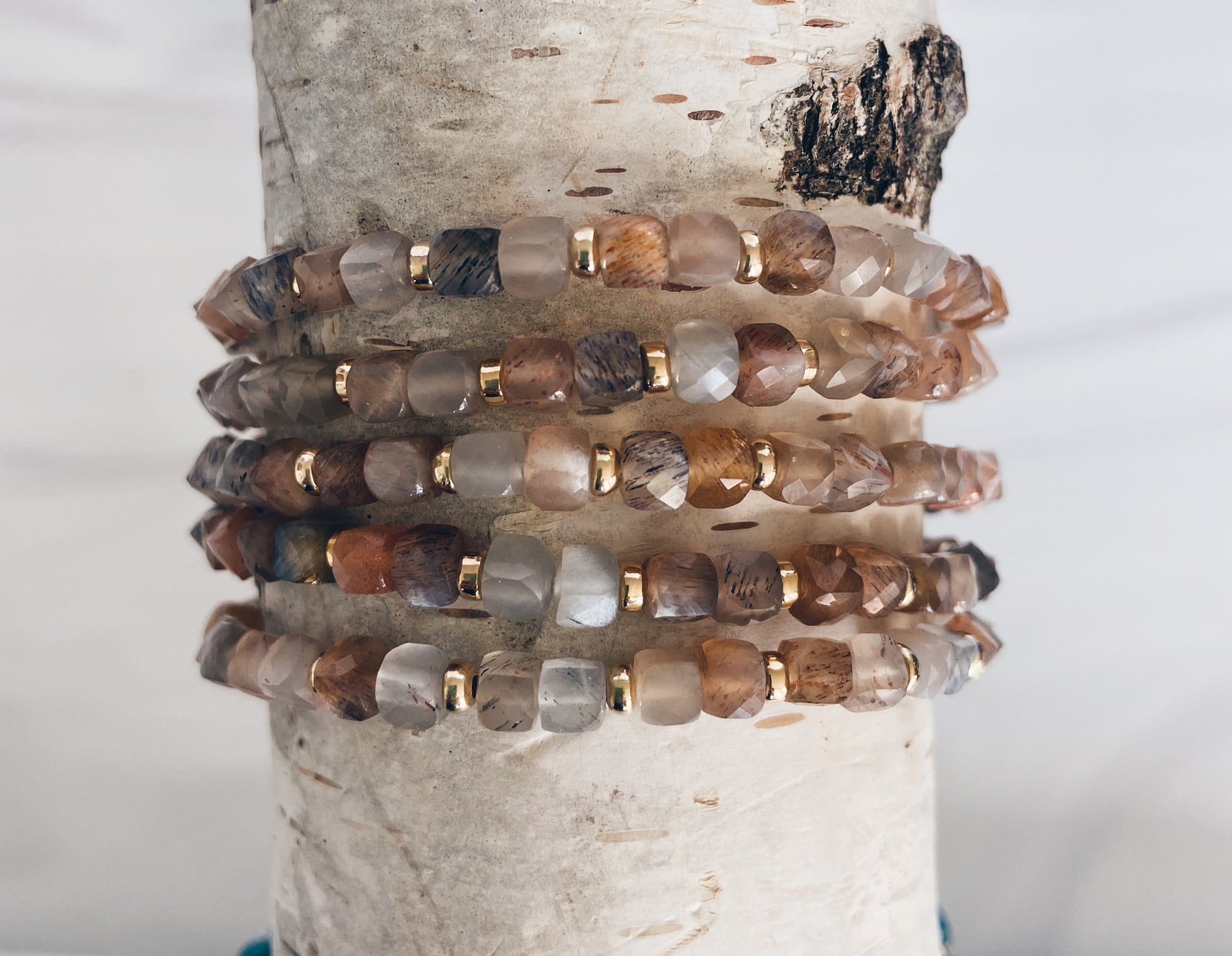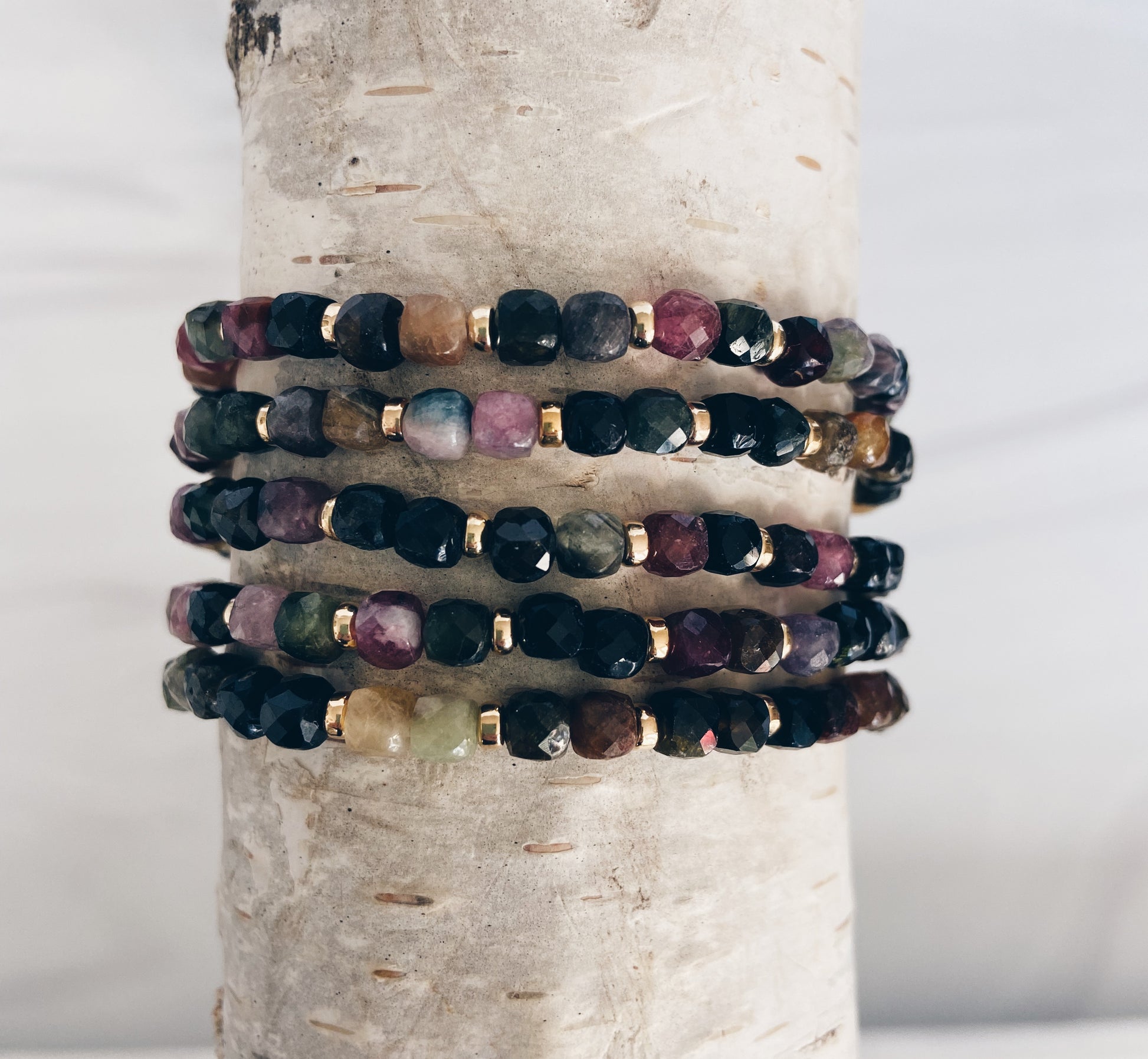 This beautiful bracelet is handmade with sparkly faceted semi-precious square gemstones and tiny 14k gold filled beads. Perfect on it's own or stacked with your favs!