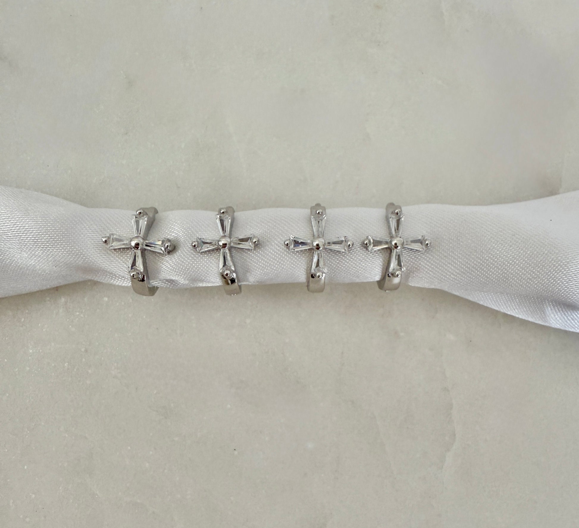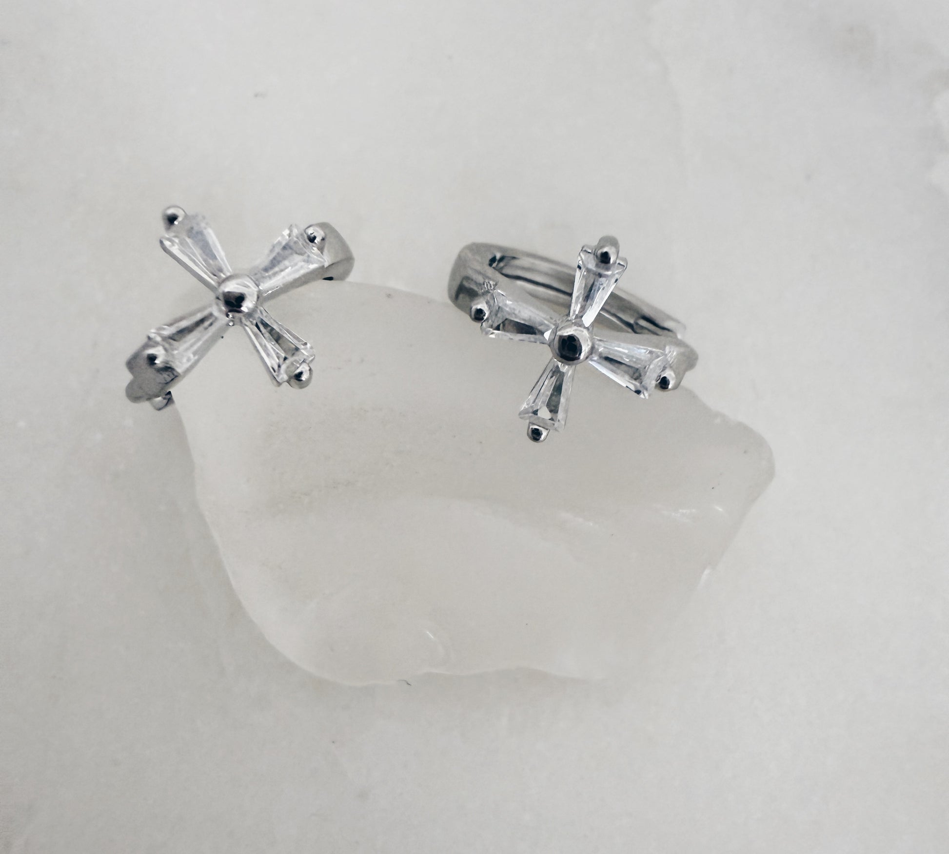 These tiny cz cross huggies are perfect for stacking your ear game or wearing alone.