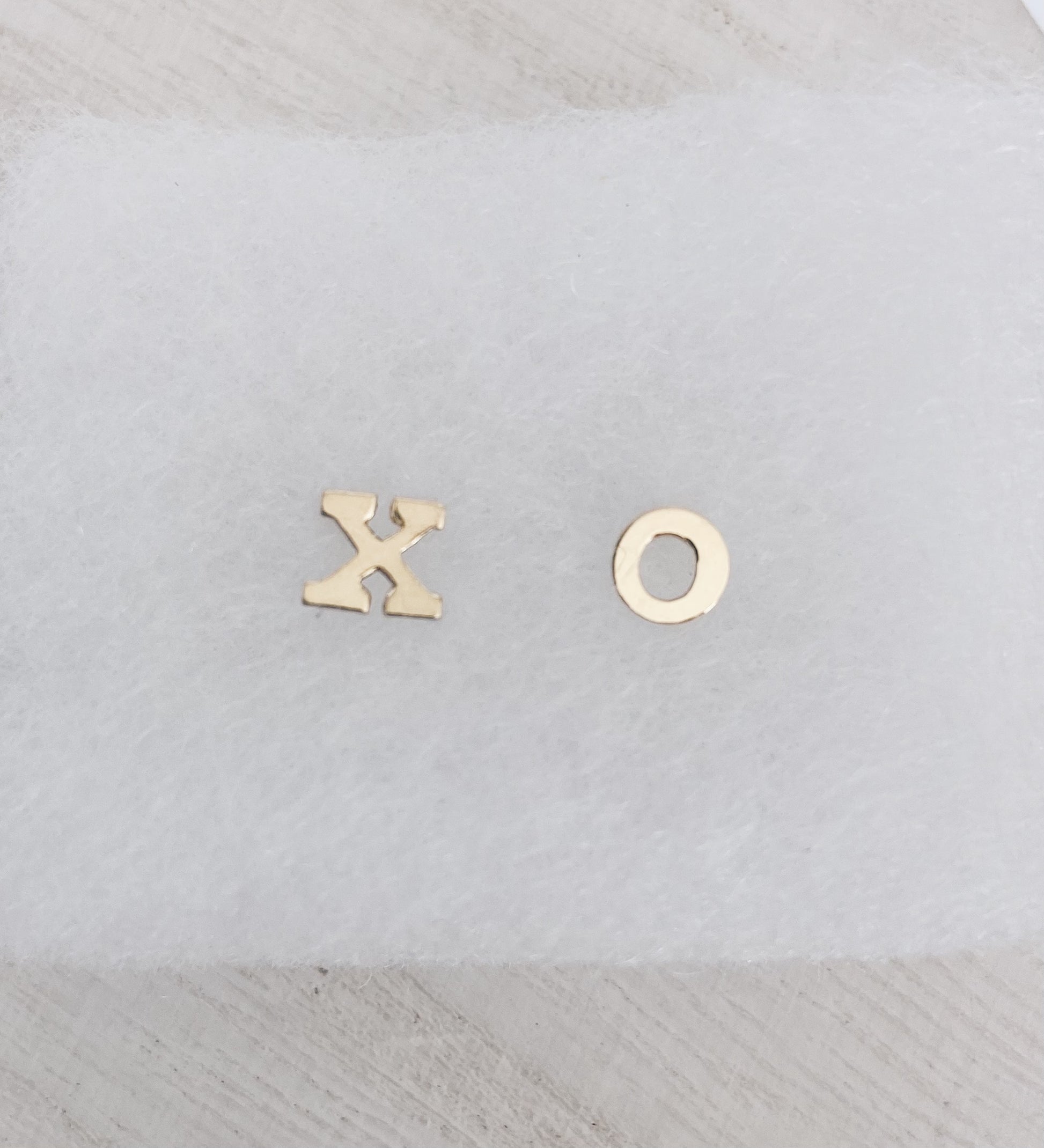 14k gold filled X & O stud earrings. Looks cute in both ears or both letters in one ear.